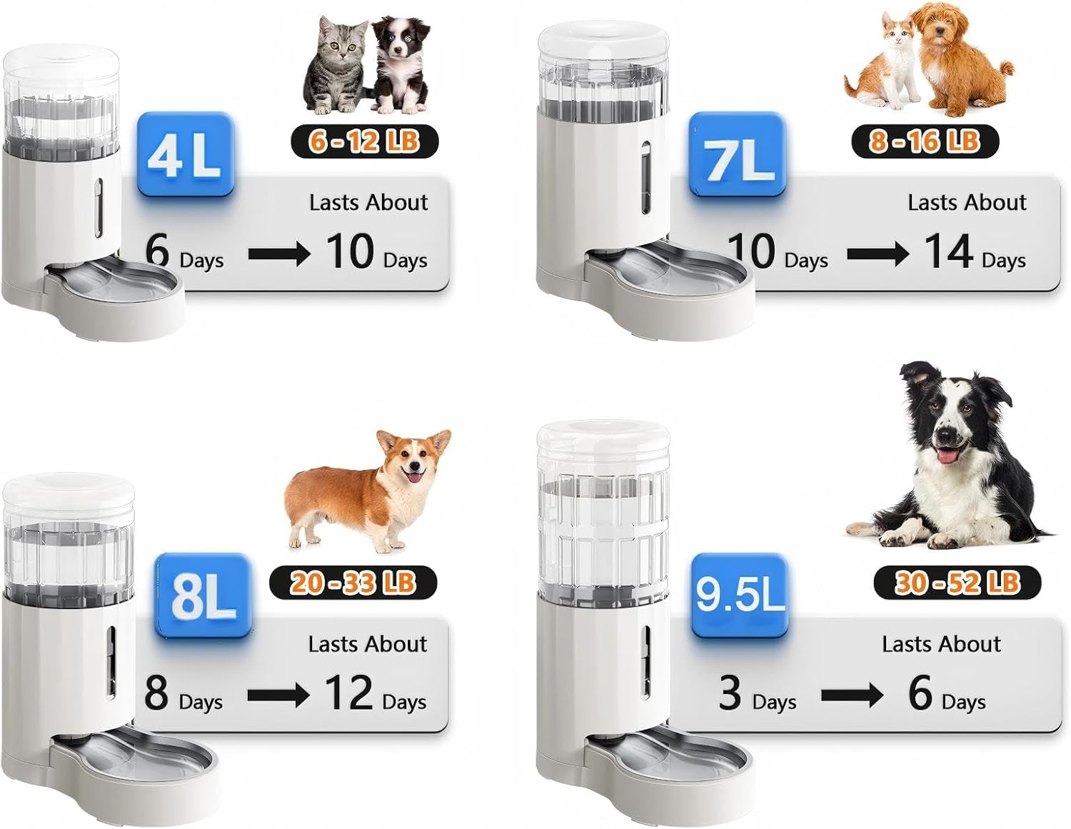 [Ultra-large Capacity] The large water storage capacity allows owners to go out without worrying about their pets running out of water. Last about 2-23 days for cat or dog use according to the pet’s size.