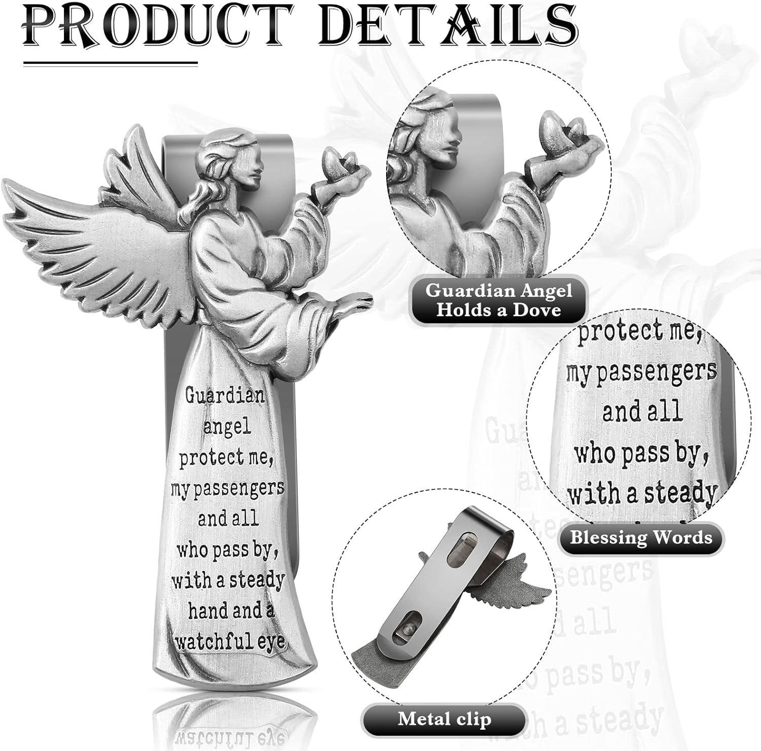 Drive Safely: visor clips for cars are designed to look like a guardian angel holding a dove, engraved with [Guardian angel, protect me, my passengers and all who pass by, with a steady hand and a watchful eye], helpful to remind drivers to be careful on the road, thus enhancing driving safety