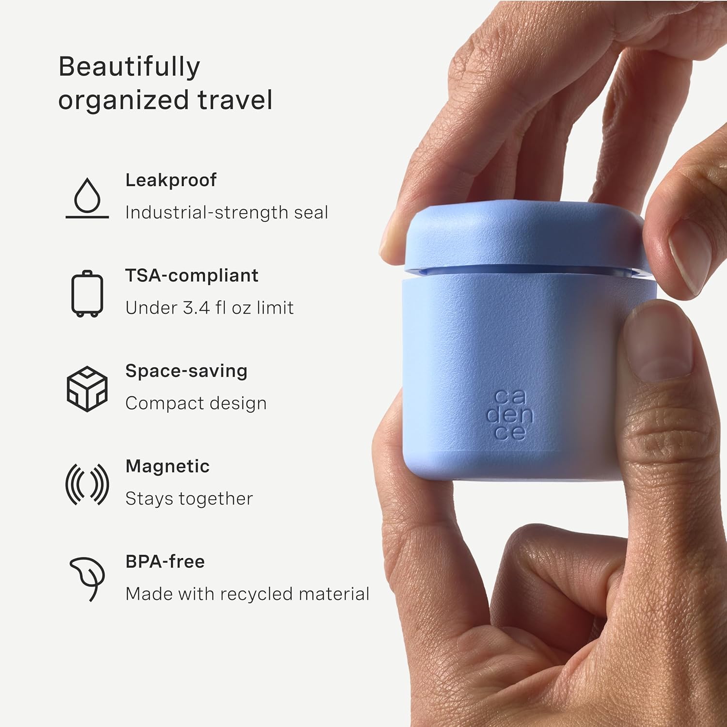 🛡️ Cadence Travel Containers Haircare Capsule Set – Magnetic Containers with Lids,Carry On Travel Essentials For Women/Men – 3 Flex Mediums (1.32oz) – Shampoo, Conditioner & Comb Icon Labels – Pacific — Safety, Comfort & Current Price (Review)