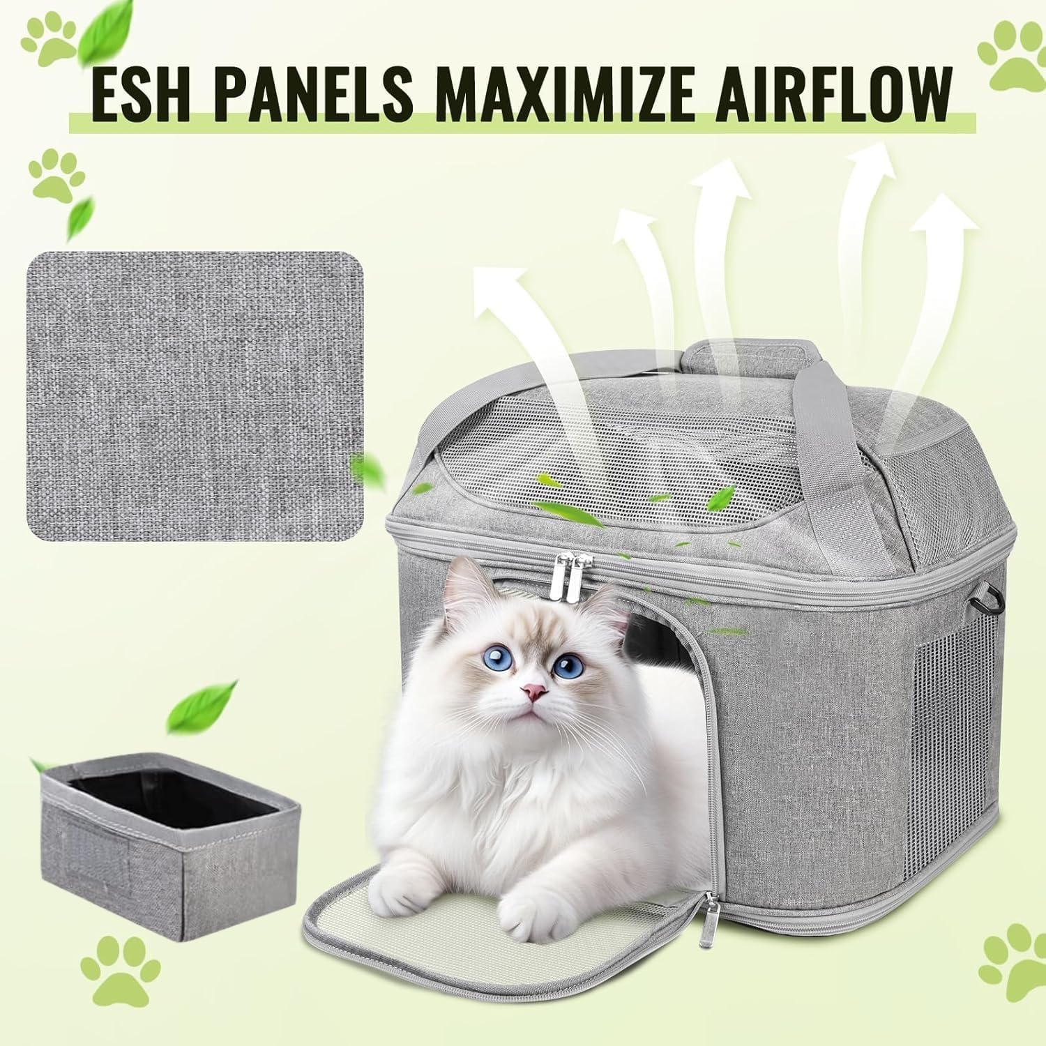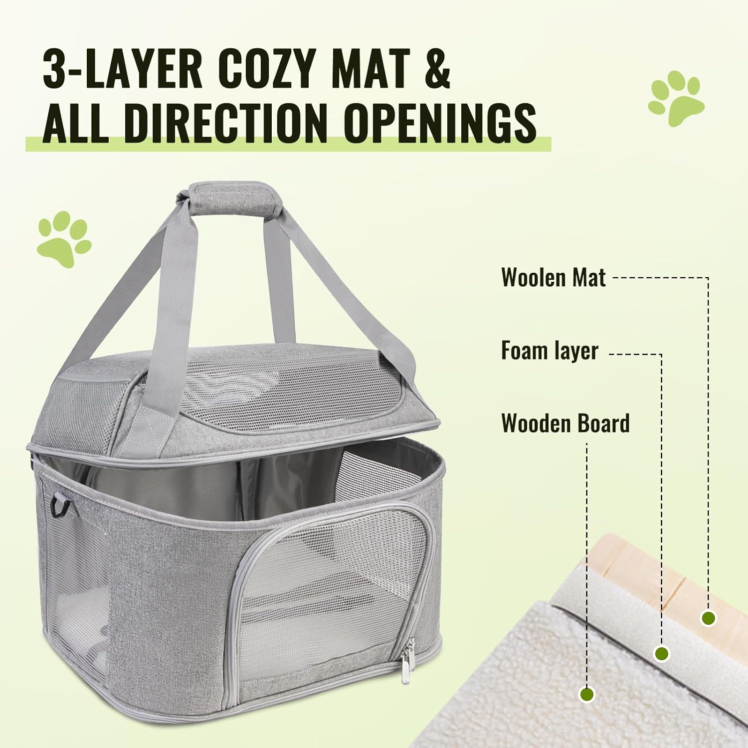 Airline Compliant & Spacious for Multi-Pet Homes:This soft-sided carrier measures 43x30x33cm (17″x11.8″x13″). Its flexible, compressible fabric is designed to fit under the seat of most major U.S. airlines, including Delta, American Airlines, and United. We recommend checking your specific airline’s pet policy for the most current requirements before your flight