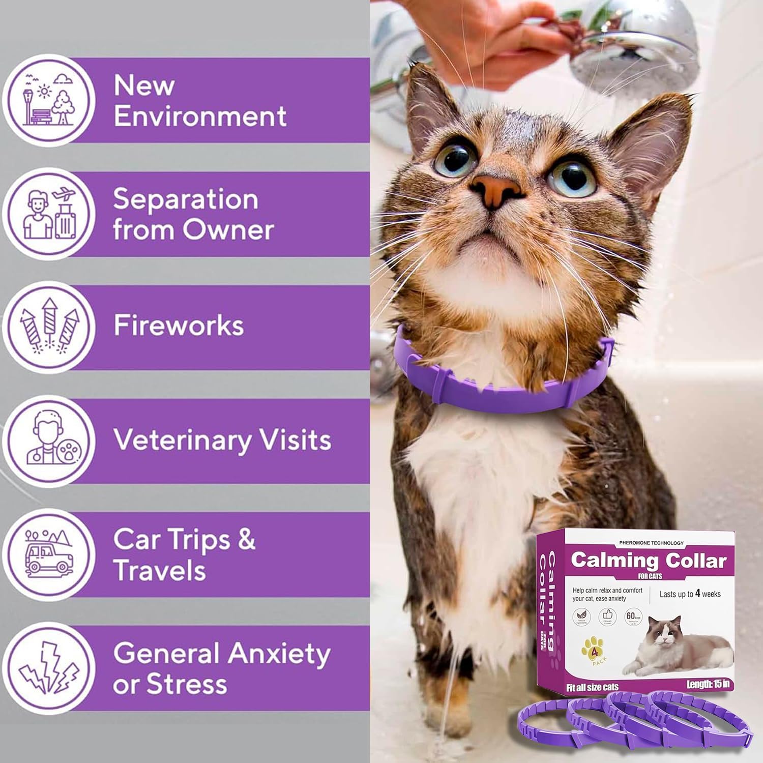 Long-Lasting 4-Pack Value: Each pheromone collar offers up to 60 days of continuous calming support. With 4 collars included, you’ll have up to 12 months of effective relief, ensuring your cat always enjoys consistent comfort.