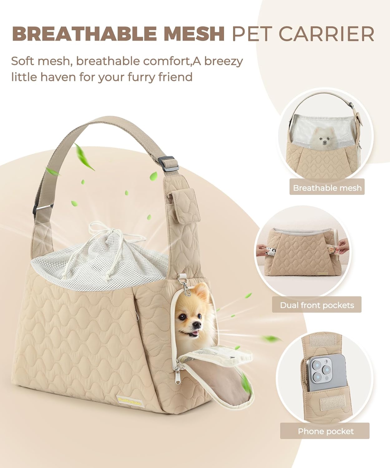 EXCLUSIVE STRAP POCKET & STORAGE: Enjoy true convenience with our unique strap phone pocket, sized to fit most smartphones for quick access. A spacious front double-zipper pocket securely holds treats, keys, and poop bags, while an external hook attaches small accessories. This multi-pocket design eliminates the need for an extra purse when walking your dog or using it as a versatile cat sling carrier.