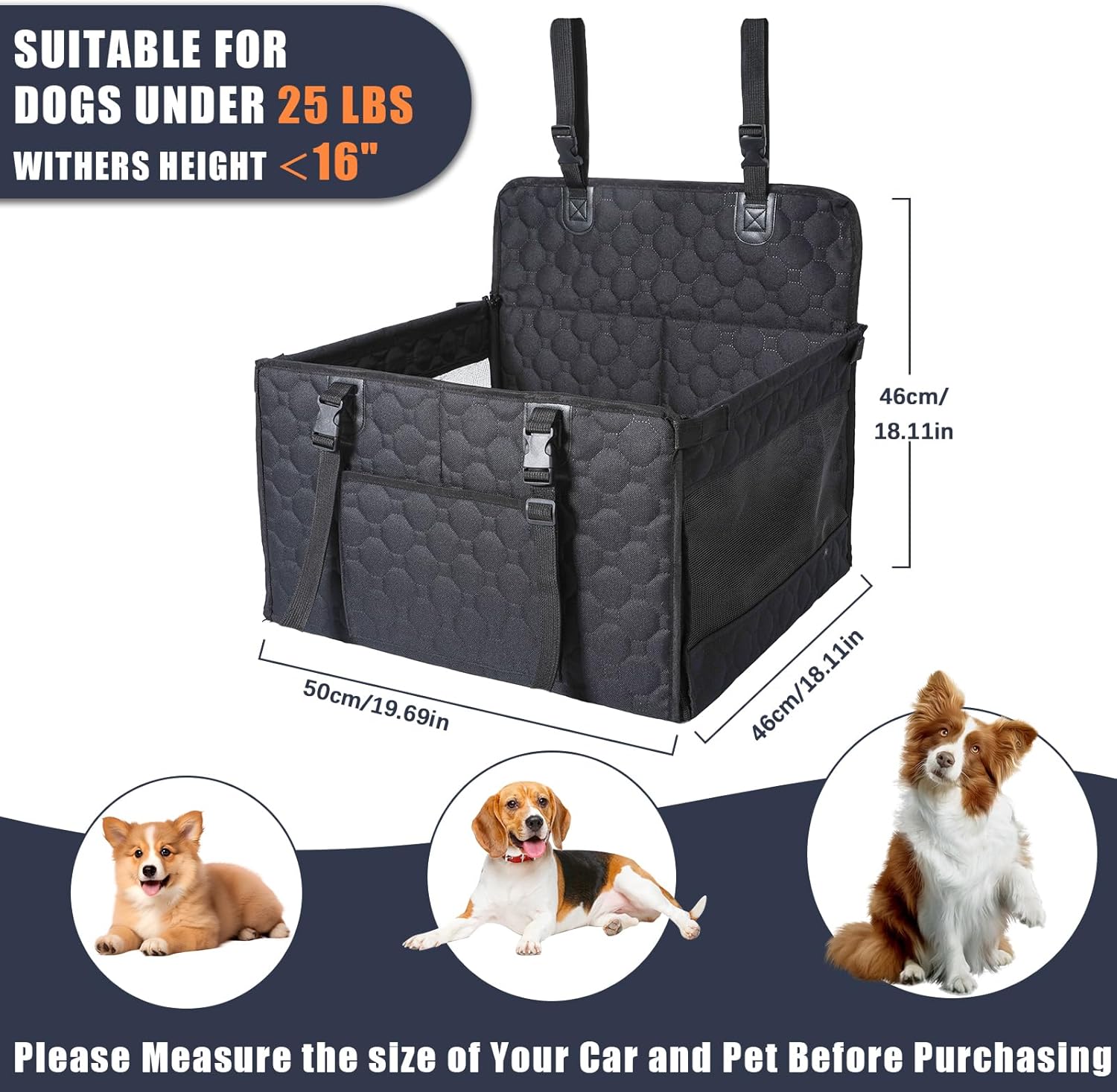 【Suitable for Medium/Small Dogs】 The size of this small dog car seat is 19.7*17.7*11.8 inches, more suitable for medium-sized or small dogs. Whether your pet is medium or small in size, this pet car seat of ours can provide them with both a safe and comfortable environment. This dog car seat of ours is also suitable for all kinds of cars, suvs and trucks, which makes it more practical. This dog seat also increases the width of the rear seat, leaving more space for your dog.