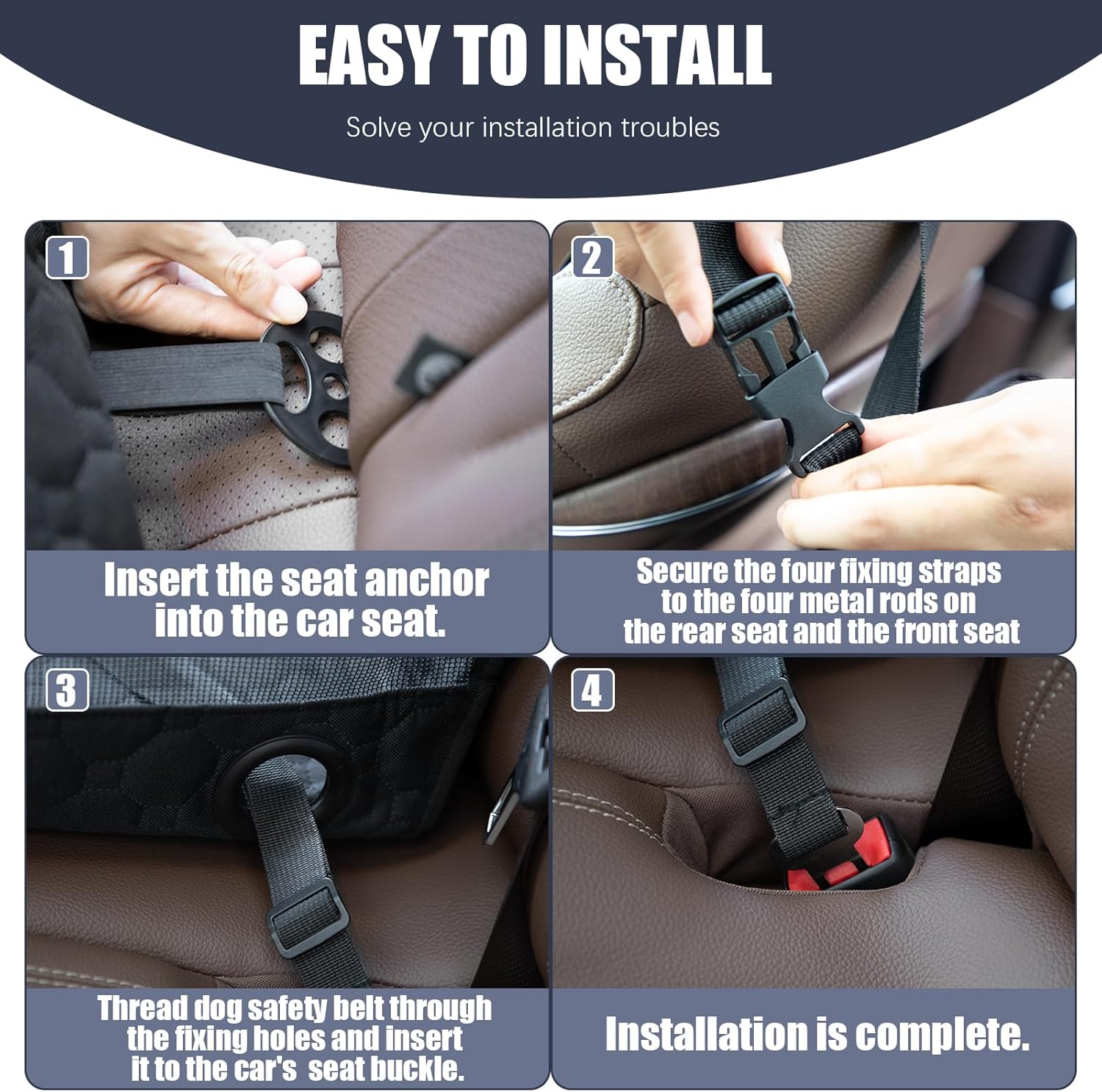 【Easy to Assemble and Install】 This pet car seat cover is very easy to install. You just need to install the pole and plate inside the seat cover. Then zipper it up and the dog seat is assembled. Of course, installing it to the car seat is also very easy. Equipped with adjustable straps, you just need to wrap the straps around the car headrest. The installation process is very simple and can be applied to different types of vehicles.