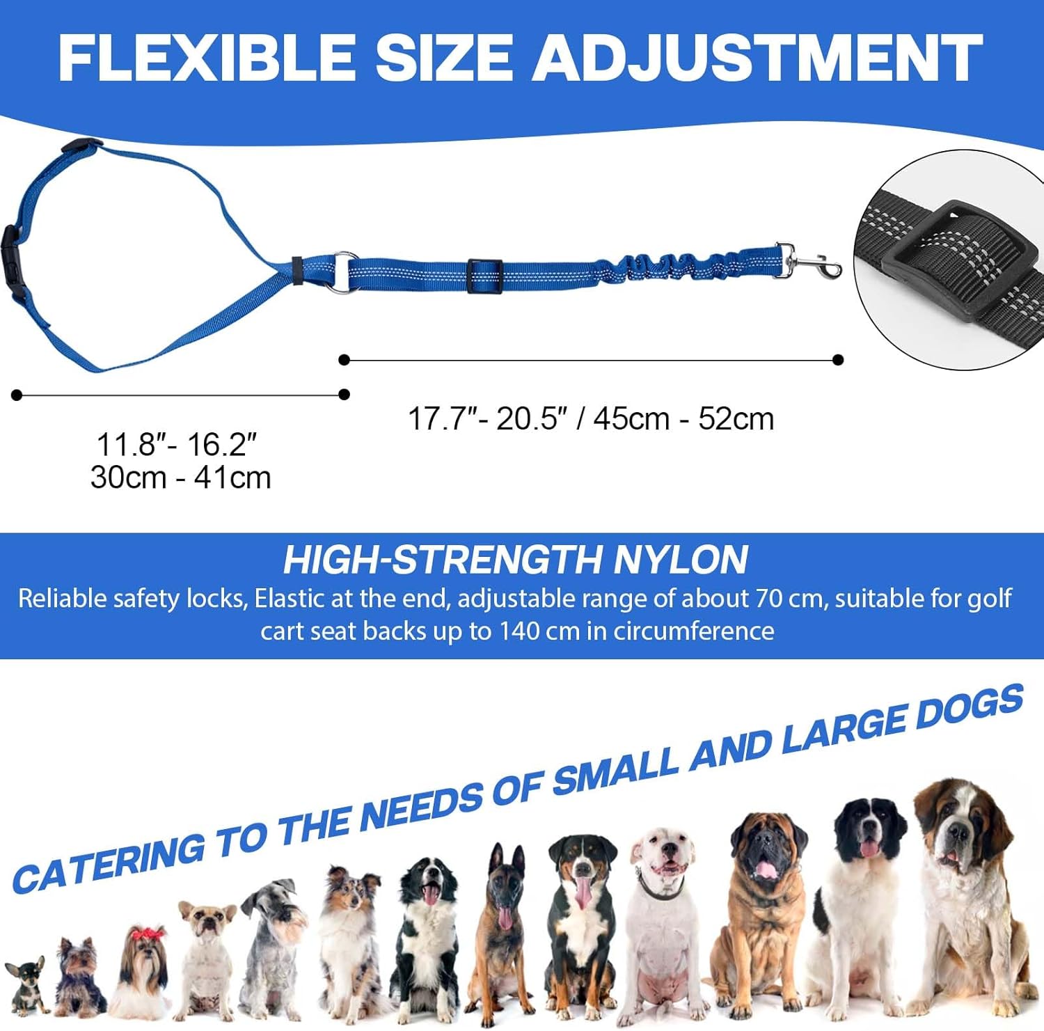 Double Protection of Safety Lock: We have designed and developed a safety lock and elastic force at the end of the rope, which not only gives your dog the most comfortable golf cart trip, but also has double protection to prevent the accidental risk caused by the detachment of the bayonet.