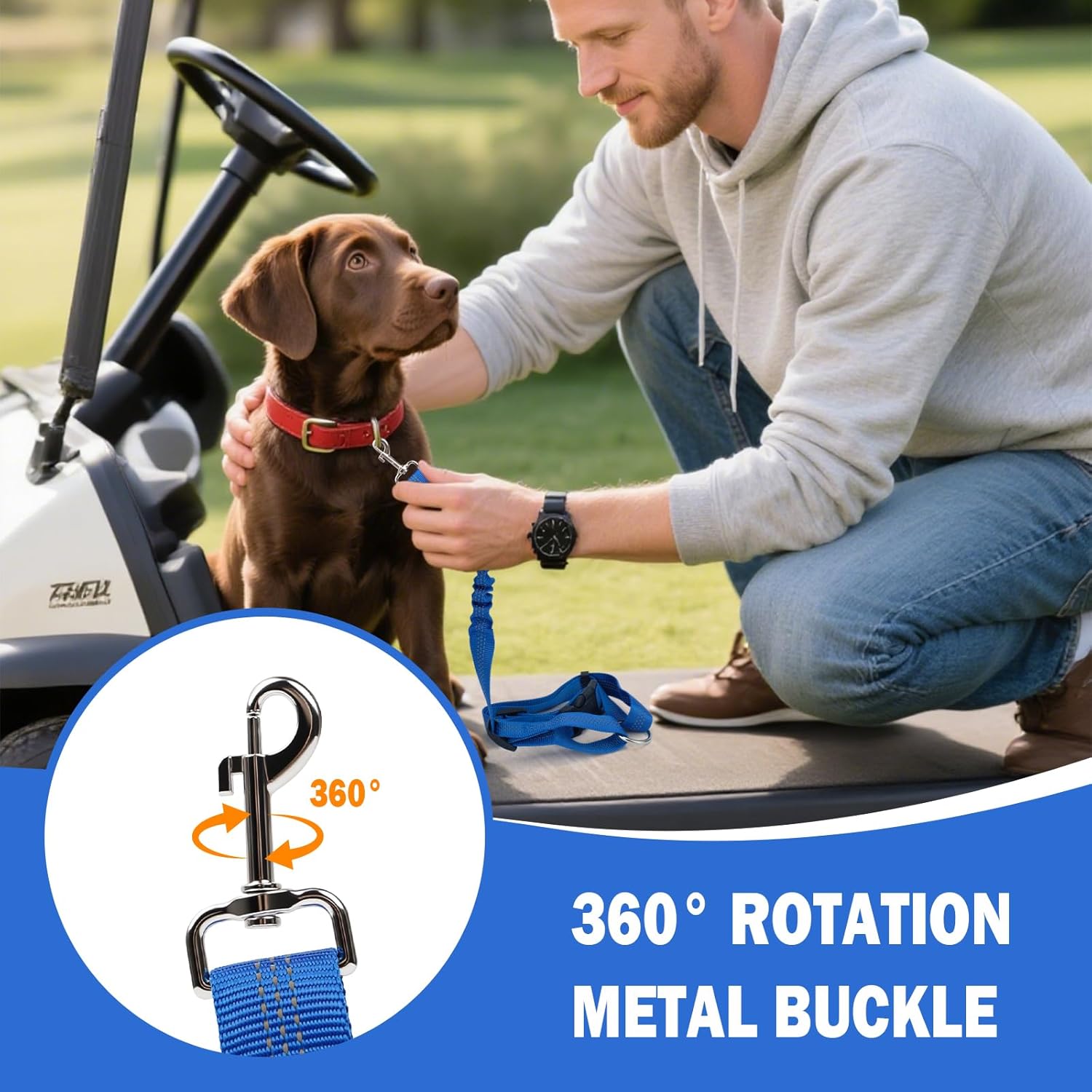 Double Protection of Safety Lock: We have designed and developed a safety lock and elastic force at the end of the rope, which not only gives your dog the most comfortable golf cart trip, but also has double protection to prevent the accidental risk caused by the detachment of the bayonet.