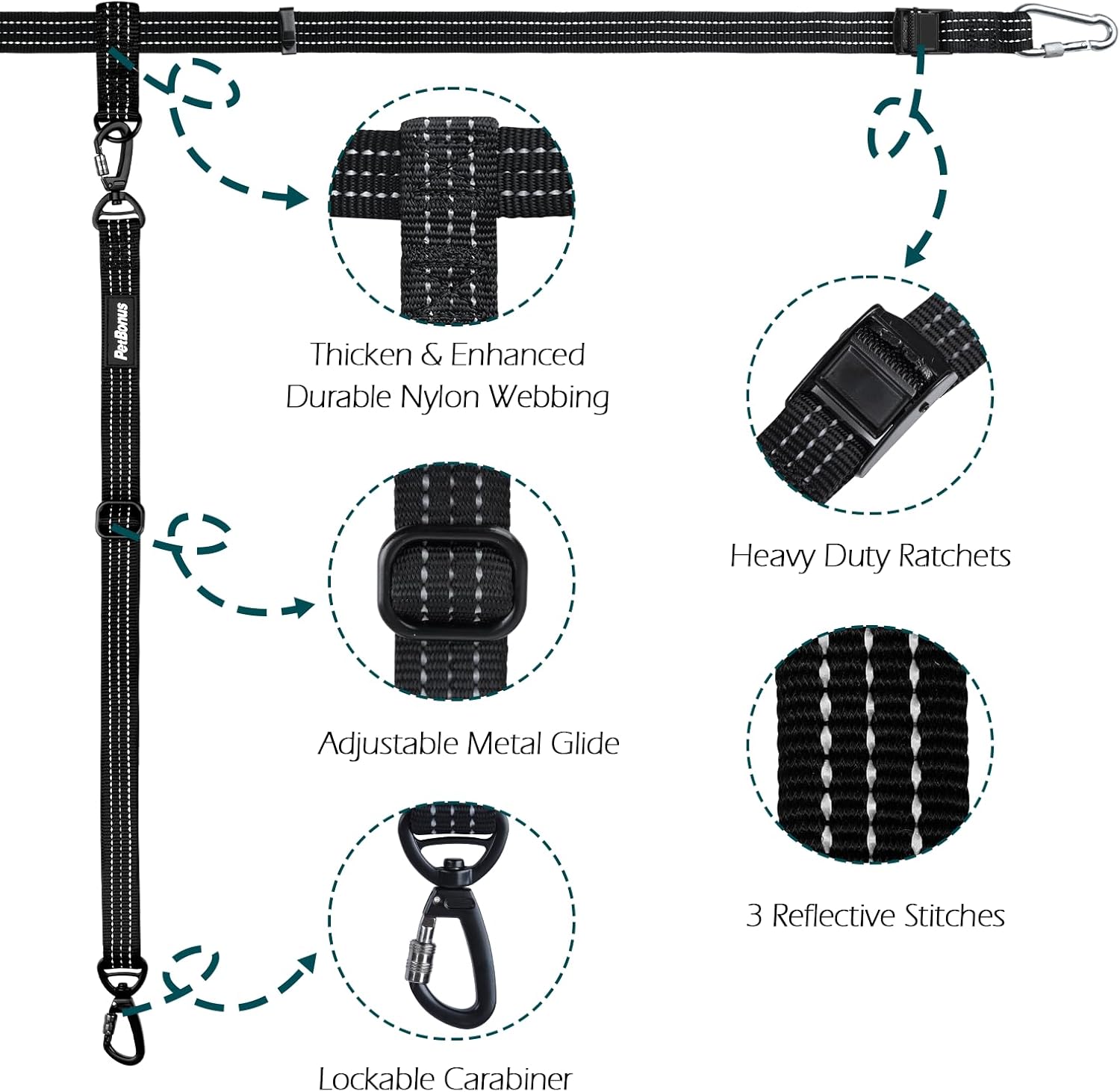 Keep Your Dog Safe and Onboard: Our dog truck leash comes with Double Locking Carabiner Clips, ensuring that the leash can be secured in car and your dog will be on leash no matter how active your dogs are. No worries about accidental slipping out situations