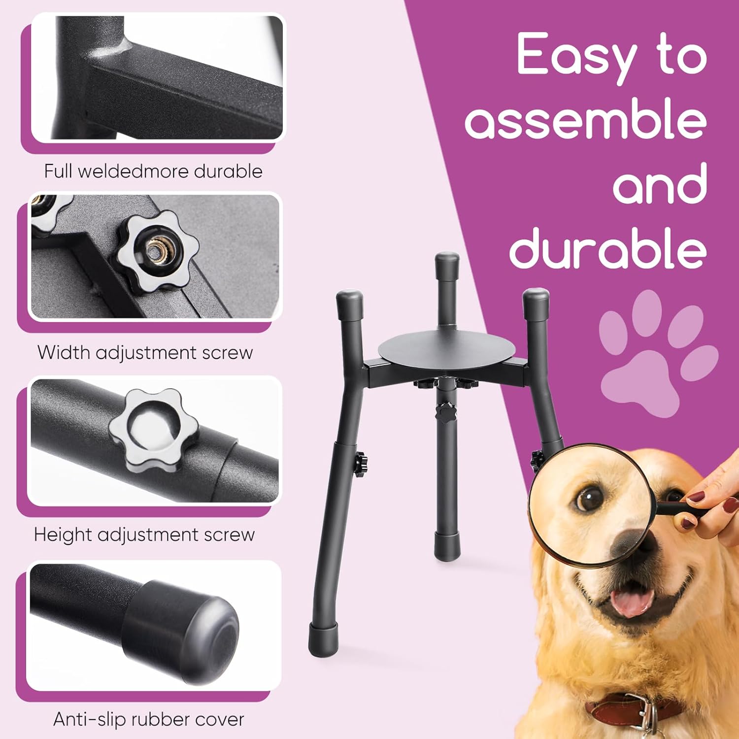 Height & Width Adjustable – 3 height settings (8.8″, 10.8″, 12.5″) and an adjustable holder width of 6.3″–10.2″ fit most stainless or ceramic bowls. Supports comfortable posture for medium & large breeds and senior dogs.