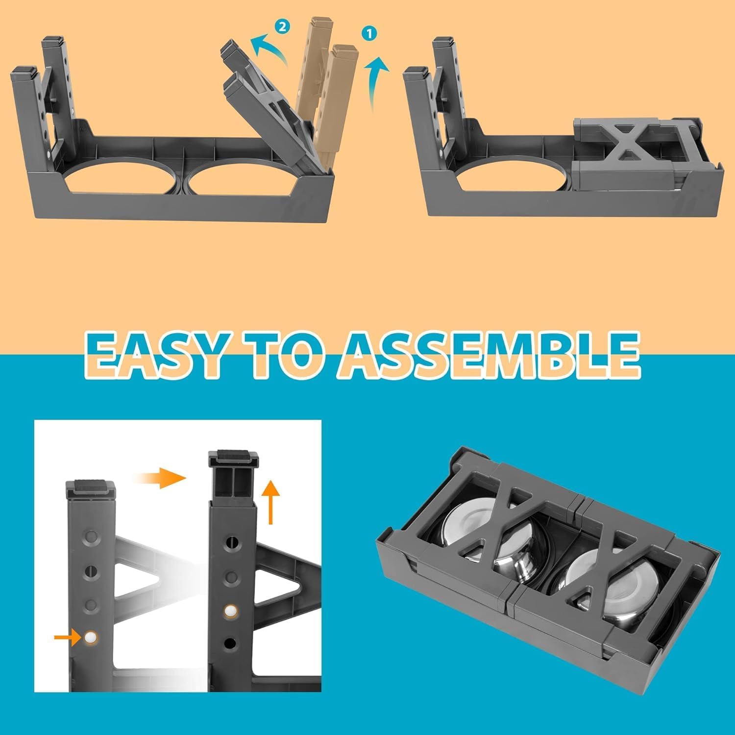 Raised dog bowls can be folded for storage and space saving, perfect for home and travel.