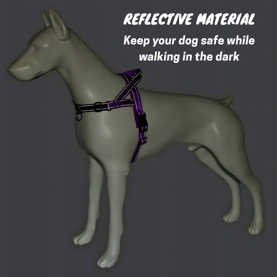 Adjustable No-Pull Dog Harness with Handle & Clips – Medium (Purple-Black)