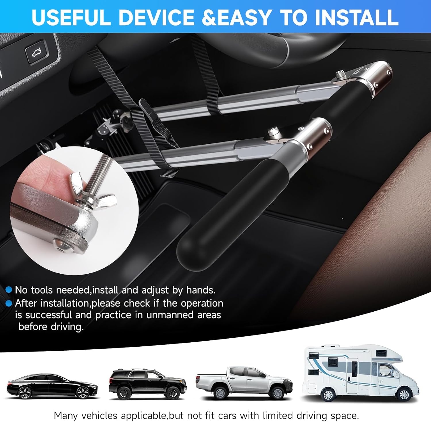 Practical Function: Help people drive by hand, designed for those with foot injuries or unable to walk, easy to install and remove, but it is recommended to have some installation experience or consider professional installation