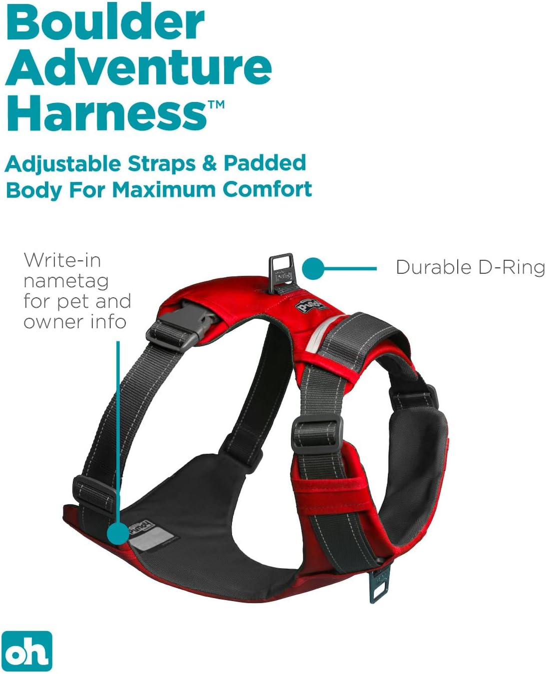 REFLECTIVE MATERIAL: The Boulder front clip dog harness contains reflective material for increased visibility and safety.