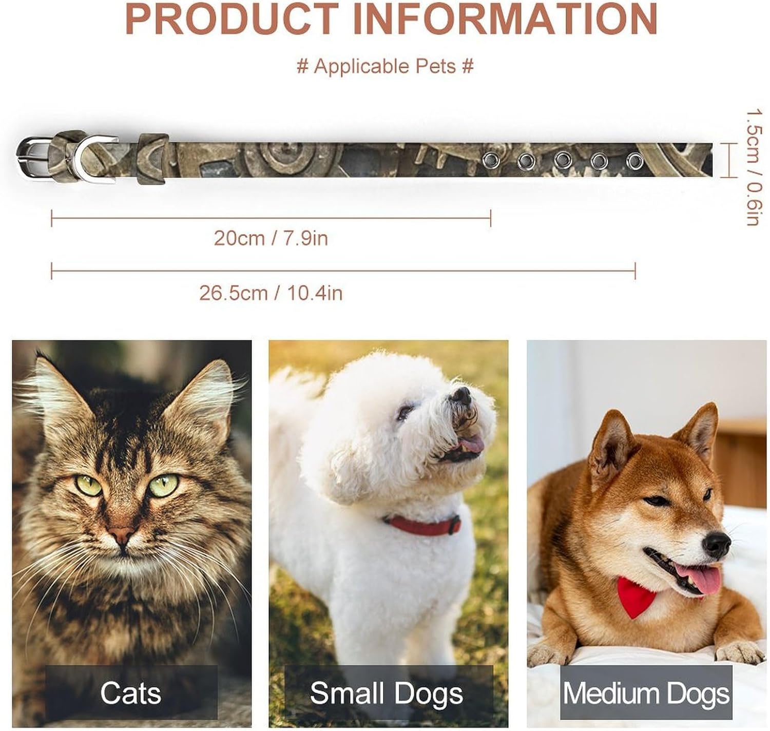 Adjustable & Comfort Fit Design: Heavy Duty Dog Collars Cool Steampunk Gears Puppy Collar features a user-friendly buckle and sliding adjustment to fit small to medium sized dogs perfectly, preventing neck strain