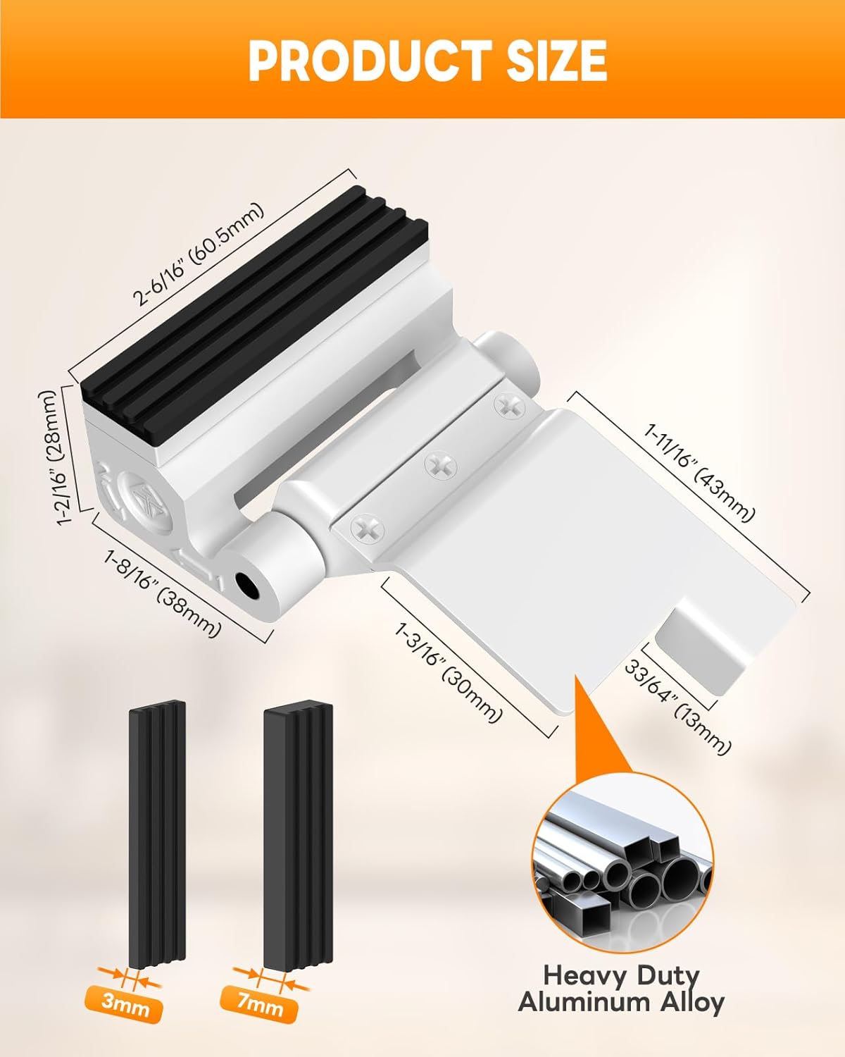 Adjustable Knob + Rubber Pad Design: The portable door lock for travel features an adjustable knob (maximum 8mm adjustment) to fit different door thicknesses and gaps. It includes two rubber pad options (3mm/7mm), select per door thickness. Turning the knob makes the rubber pad cling tightly to the door, stopping loosening/wobbling and avoiding door scratches