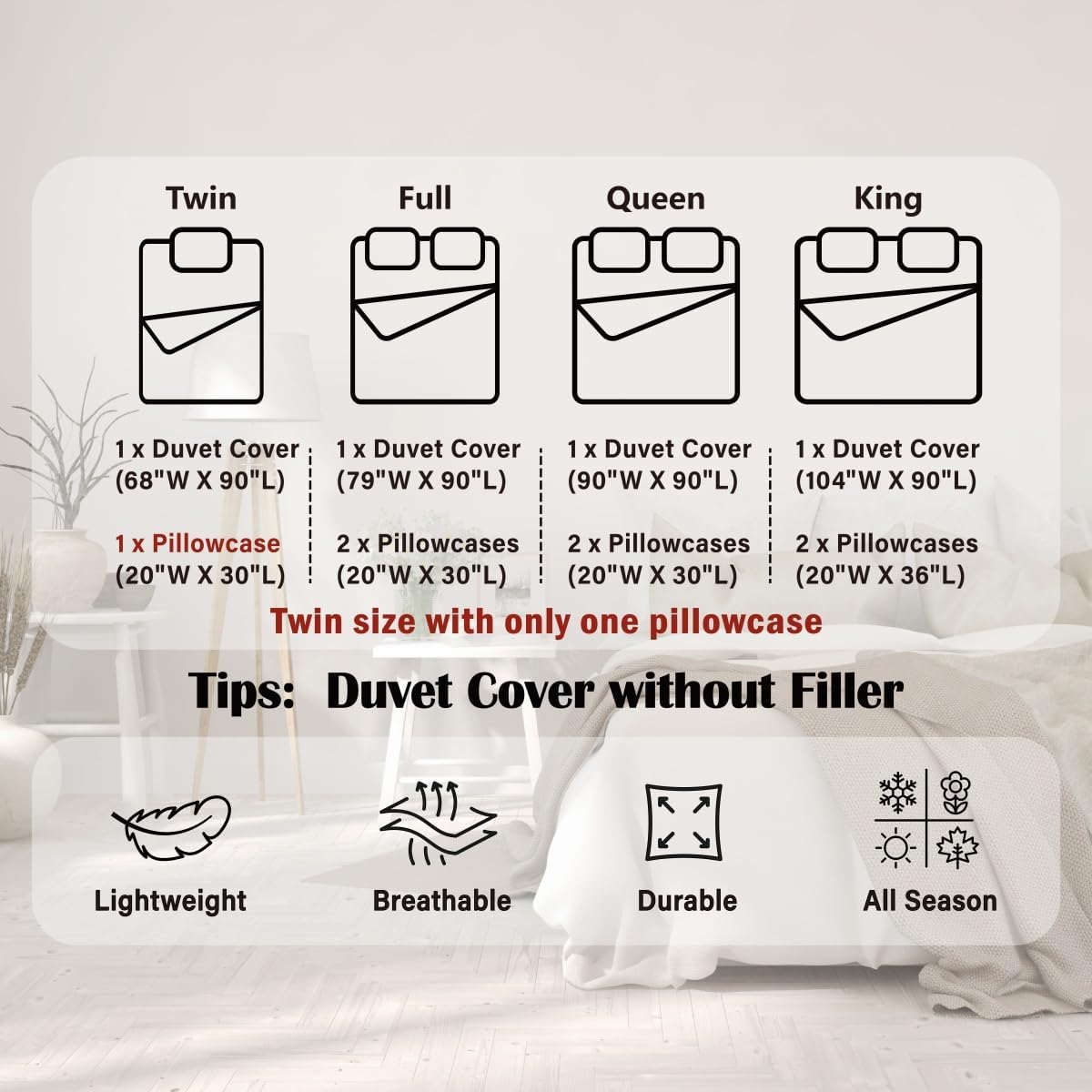 Package Information: Twin Size bedding sets just included 1 Duvet Cover 68″ x 90″ and 1 Pillowcase 20″ x 30″. Without Comforter, No Filler