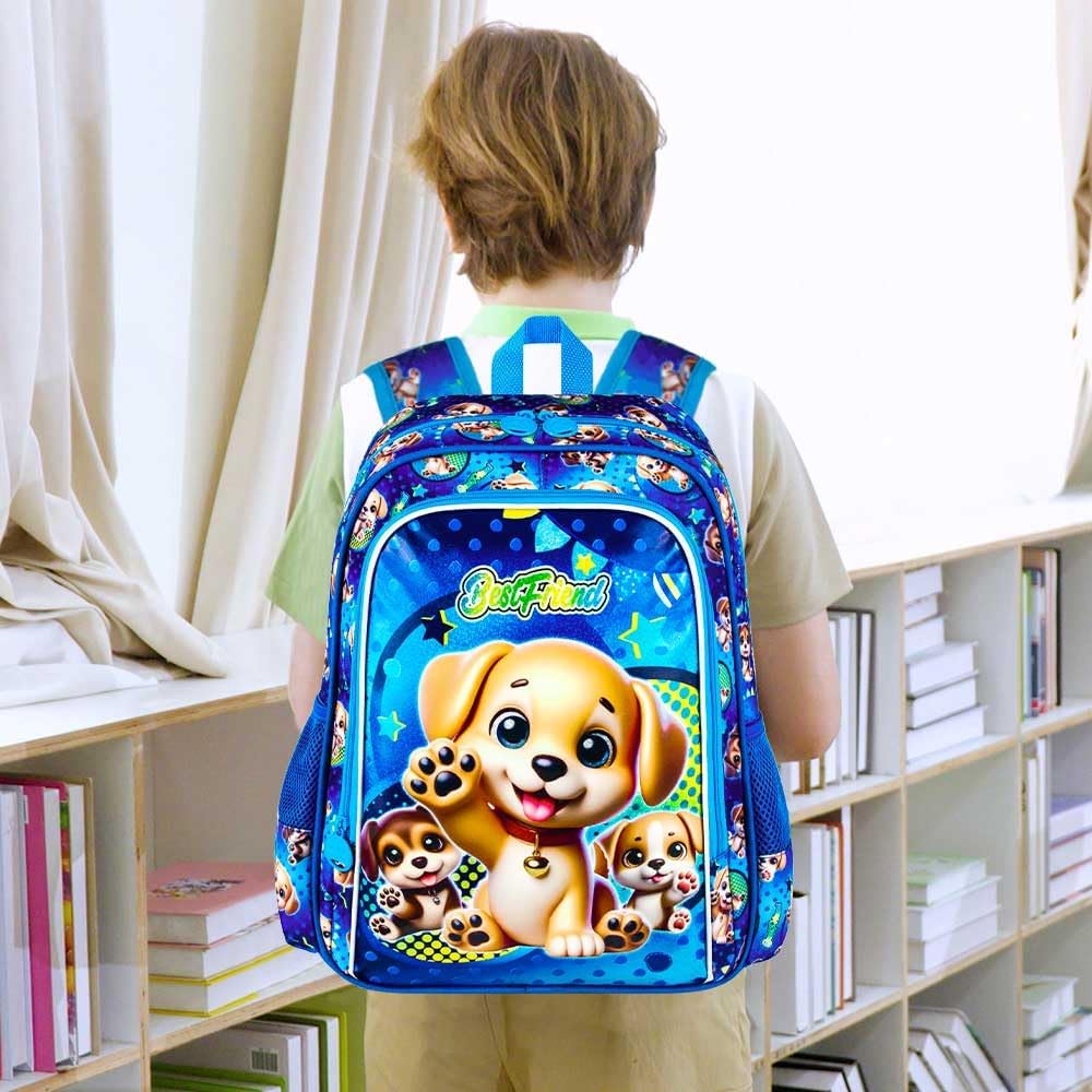 Boys Backpack 3 in 1: Kids Dog Backpack + Lunch bag + Pencil bag, atractive UV printing design , delicate polyester material, smooth zipper, widened and thickened shoulder straps make it feel nice and comfortable.