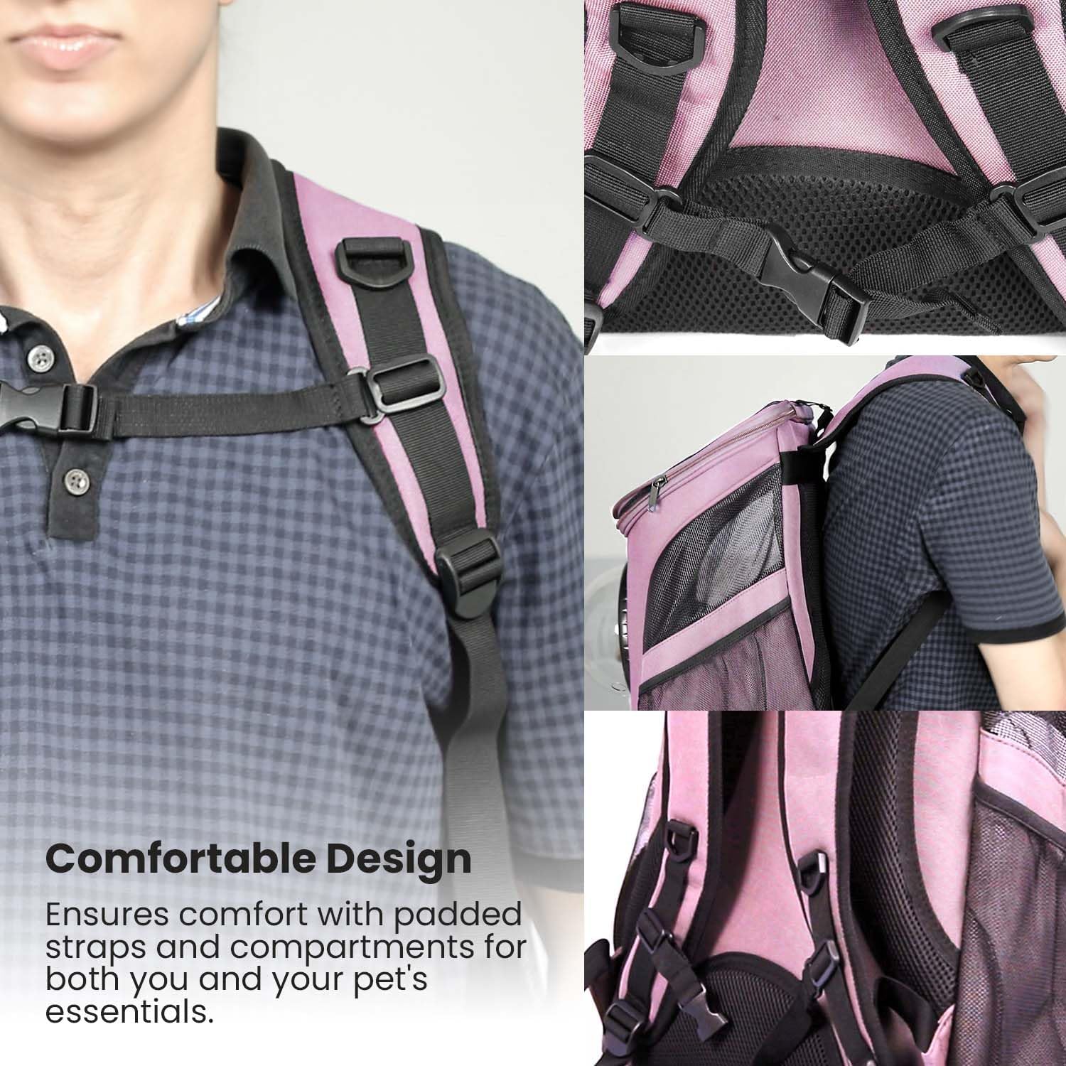 Comfort First – The pet backpack carrier is designed with lumbar support and ergonomic shoulder straps, providing balanced weight distribution for easy and comfortable pet transport.
