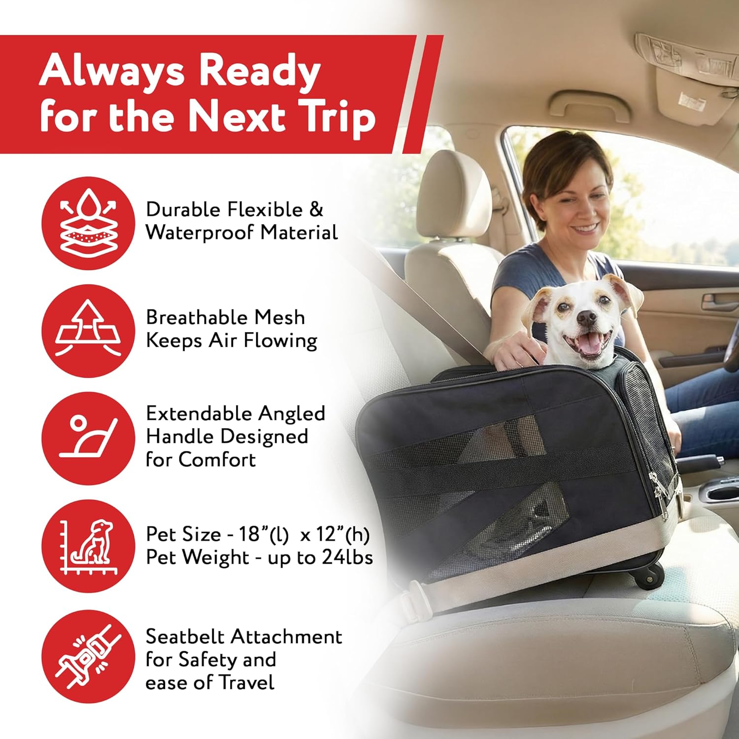 Airline-Approved Smart Cart Pet Carrier with Wheels, 24 lb Capacity