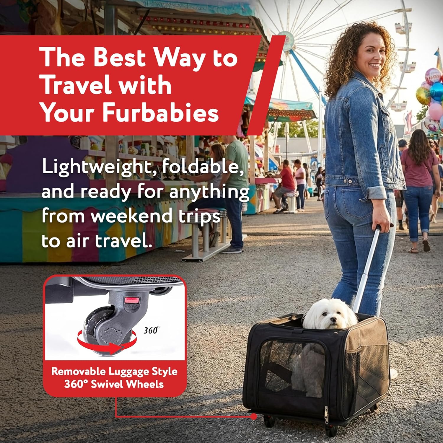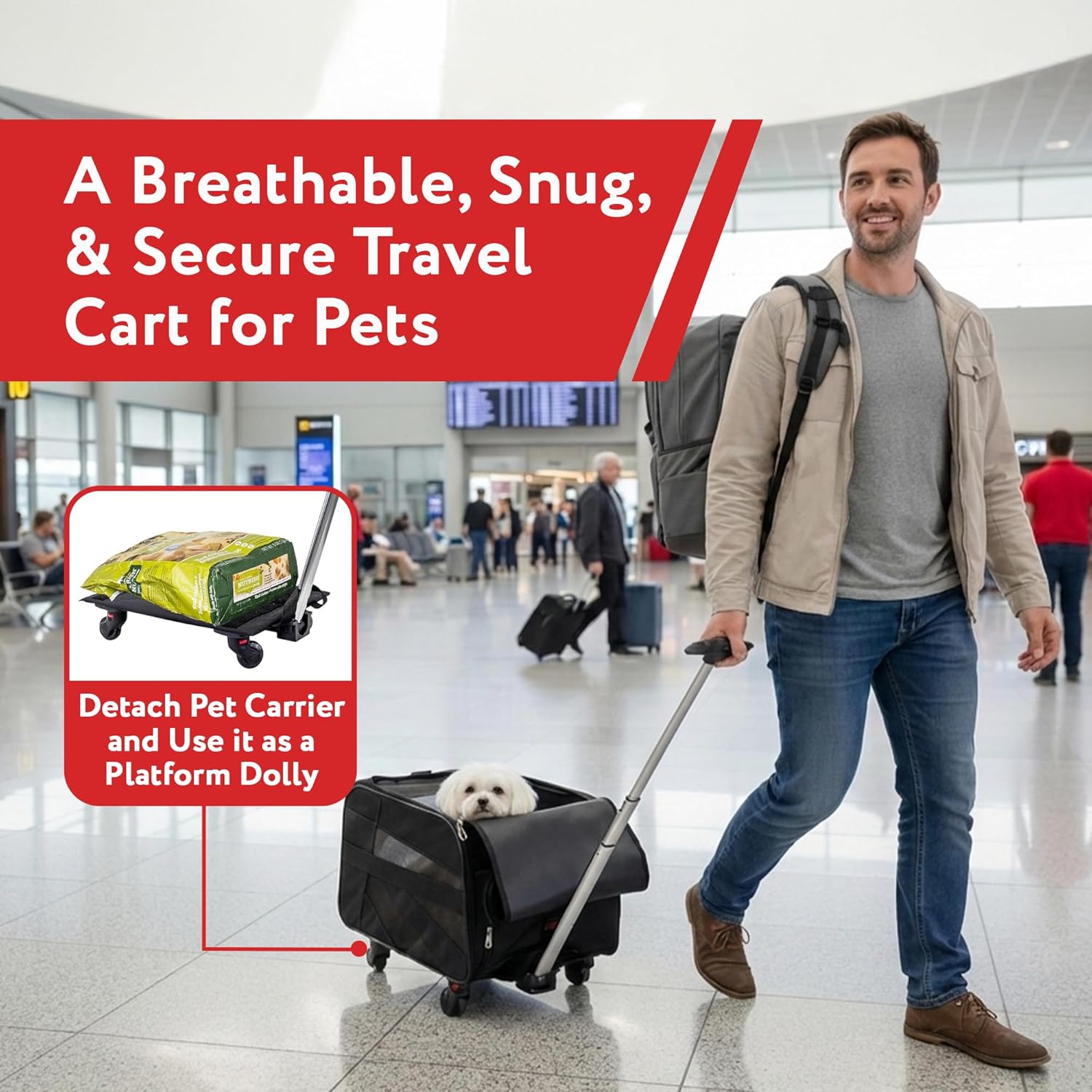 Airline-Approved Smart Cart Pet Carrier with Wheels, 24 lb Capacity