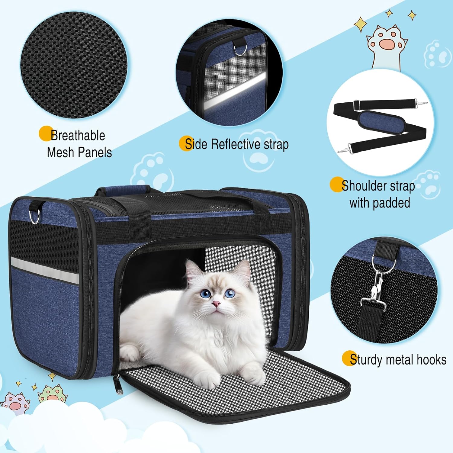 VERSATILE USE: From airplane cabins to car seats, this soft-sided cat/dog/pet carrier adapts to any scenario. Whether walking, traveling, visiting the vet, shopping, or riding in the car, this pet carrier is perfect for daily outings or short trips, providing your pet with a safe and comfortable environment