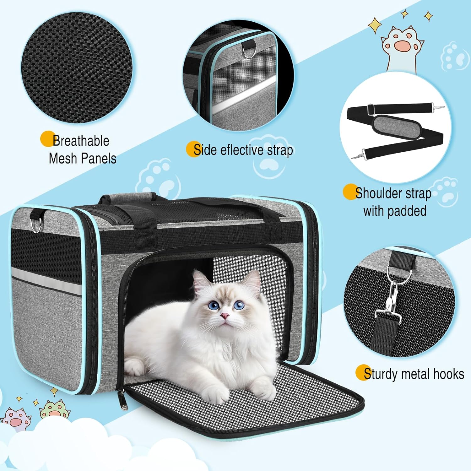 SUPERIOR VENTILATION AND VISIBILITY: This soft sided cat carrier features four mesh windows and zippered openings on the top and sides, providing fresh air and visibility to reduce pet anxiety and keep them comfortable