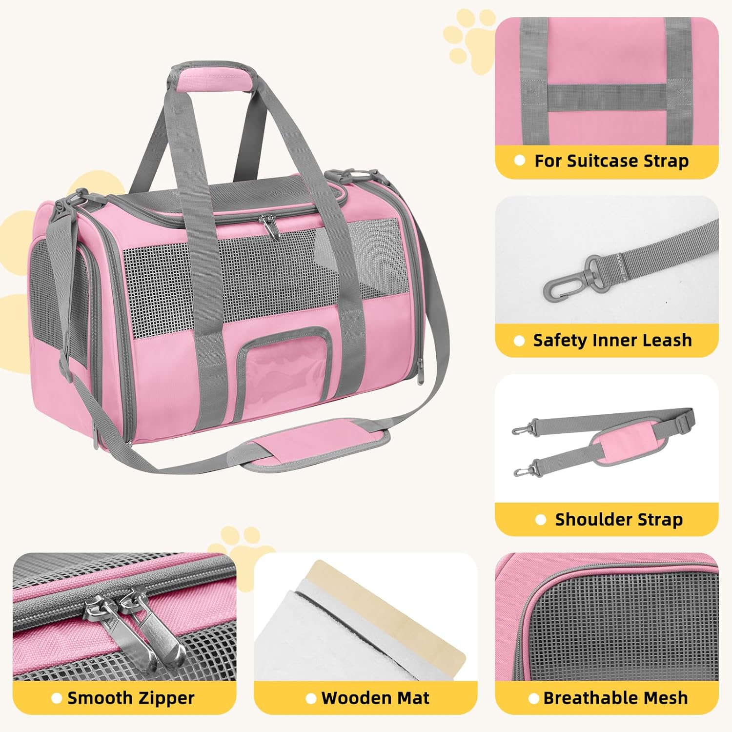 ✈️ Soft – Sided Pet Carrier for Cats and Small Dogs, Airline – Approved, Pink Travel Tote with Mesh Windows, Foldable Bowl, Shoulder Strap, Oeko – TEX Certified — Airline-Approved Dog Carrier Review & Current Price