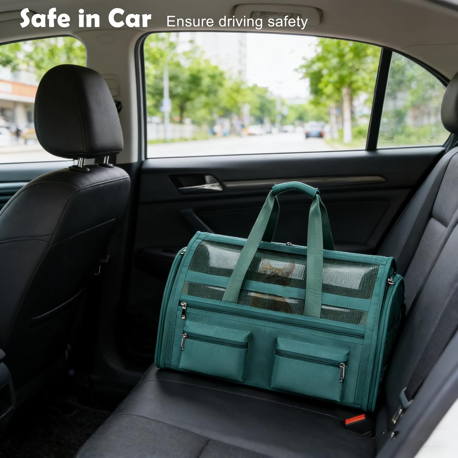 [SAFE AND COMFORTABLE] Dog travel bag has metal zippers on the top and side entrances, durable and not easy to deform, it allows your pets to enter and exit easily. The cat carrying case is equipped with an anti-escape safety buckle, which can effectively prevent pets from accidentally falling. It is suitable for car rides and vet rides.