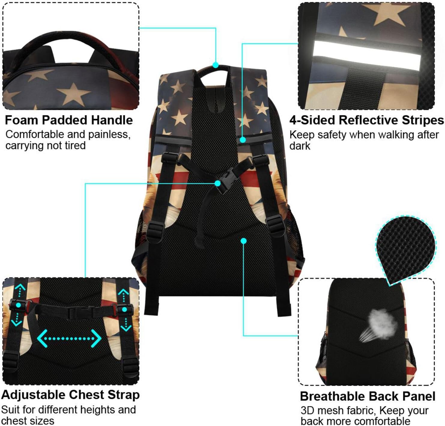 Features: There are reflective strips on the front and both sides of the schoolbag, offers high visibility at night or in low light and ensure the safety of students