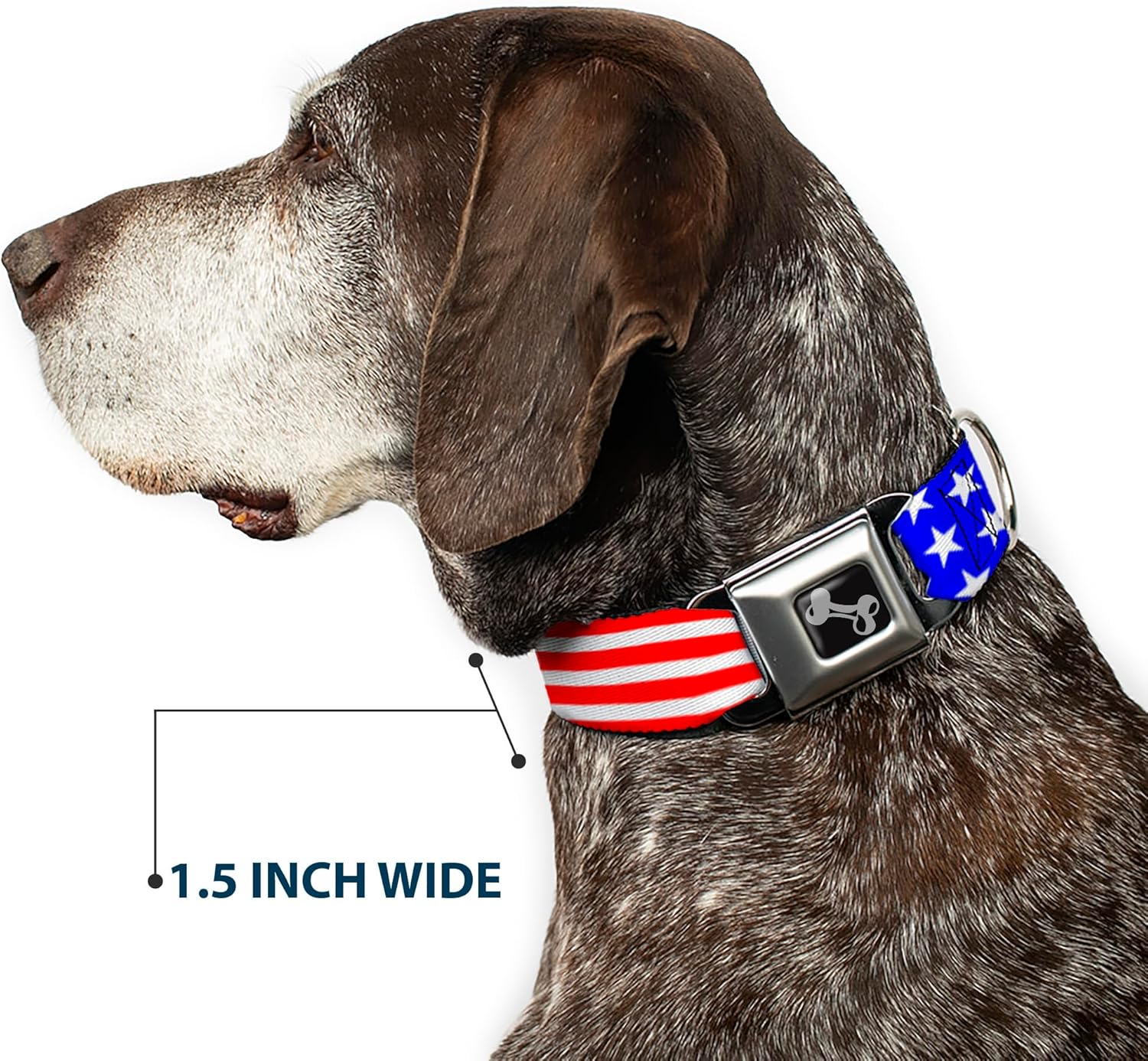 Americana Dog Collar with Seatbelt Buckle – Red, White & Blue, 11-17″