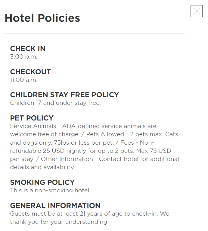 - The hotel has limited pet rooms available