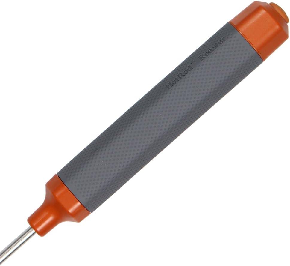 The HotRod Roasting Stick features battery-powered automatic rotation, lasting over 18 hours on AA batteries. Built for the outdoors, it’s water-resistant for all-weather use. Reverse prongs add safety, making it a safe and fun for the whole family.