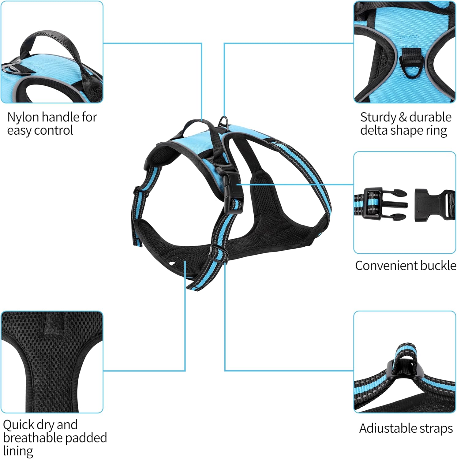 The dog harness with simple design, lightweight but strong, easy to use.