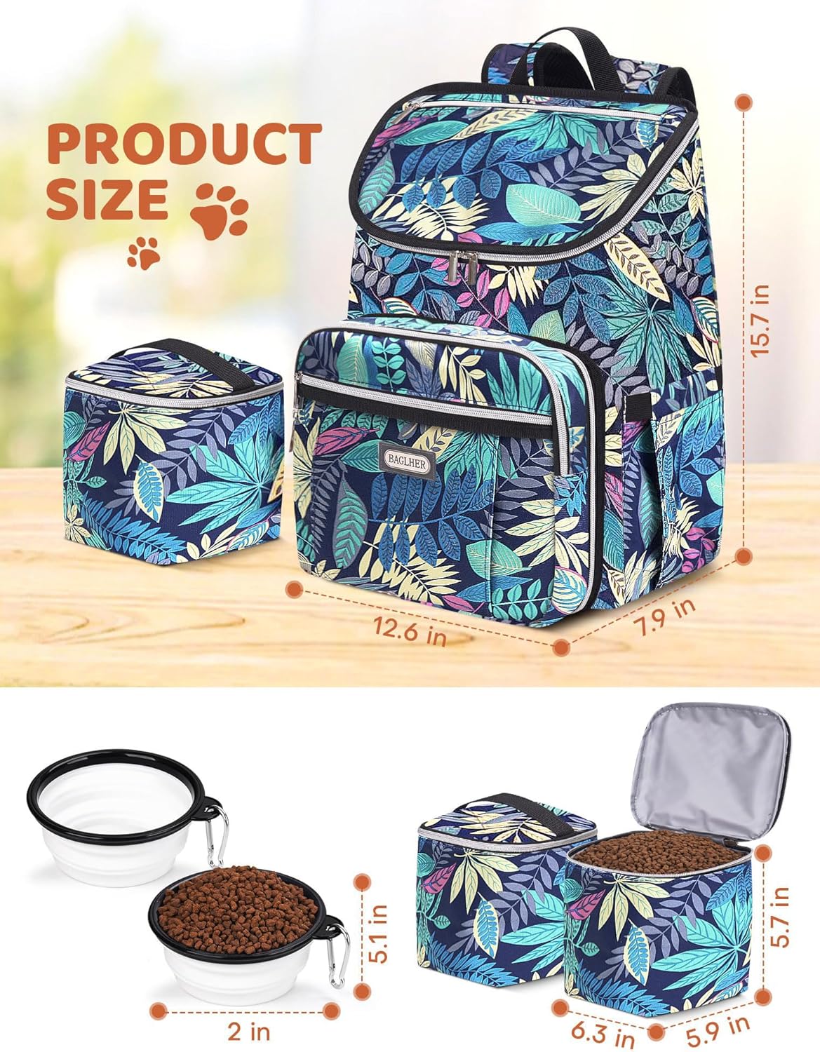 BAGLHER Dog Travel Backpack with Detachable Food Container & Bowls