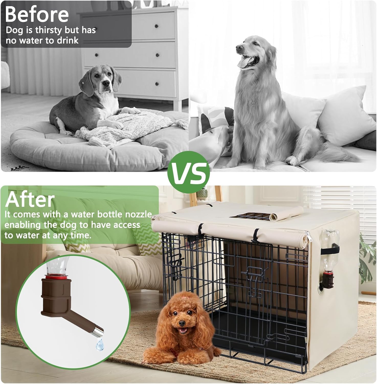 Tip: This product does not include a dog crate, does not include a water bottle, only a dog crate cover with a water bottle spout