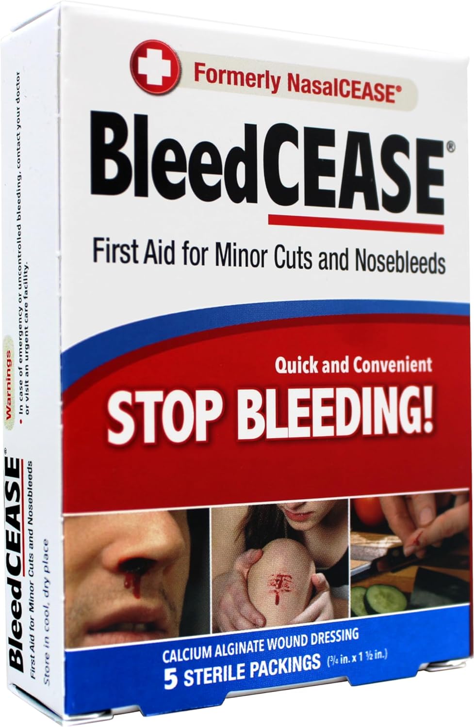 Stops nosebleed quickly As soon as BleedCEASE comes in contact with blood, calcium ions are released. Calcium is a clotting factor (Factor IV), which accelerates coagulation, stopping the nosebleed quickly.