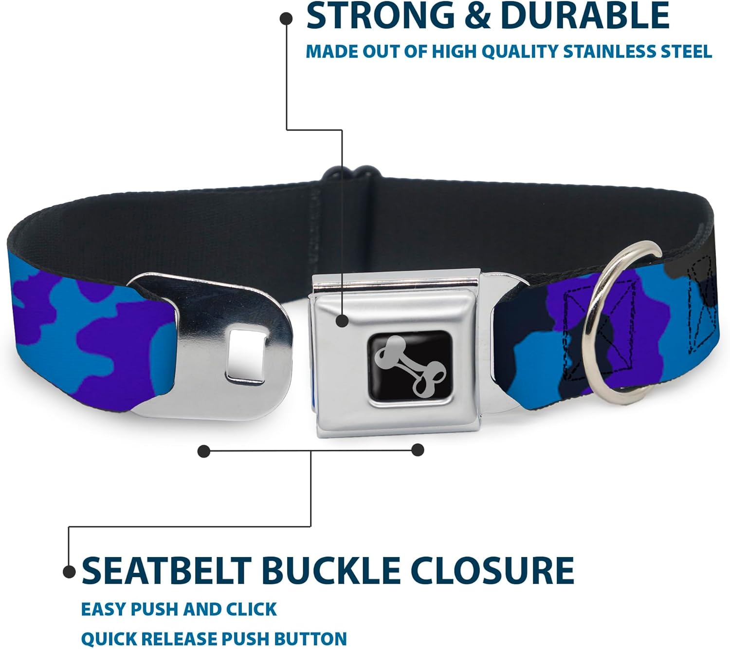 Blue Camo Dog Collar with Seatbelt Buckle, 15-26 Inch, 1 Inch Wide