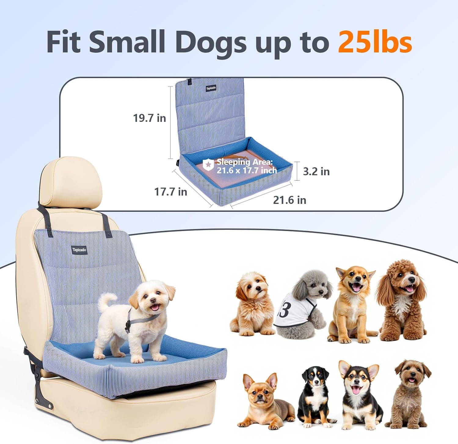 ✅【Fit Small Dogs up to 25lbs】- Our pet car seat has an overallsize of 21.6″ x 17.7″, making it compatible with the majority of front seat in standard cars, trucks and SUVs. Backrest flaps provide full coverage to protect your entire seat. Our dog car seat suitable for small dogs weighing up to 25lbs.