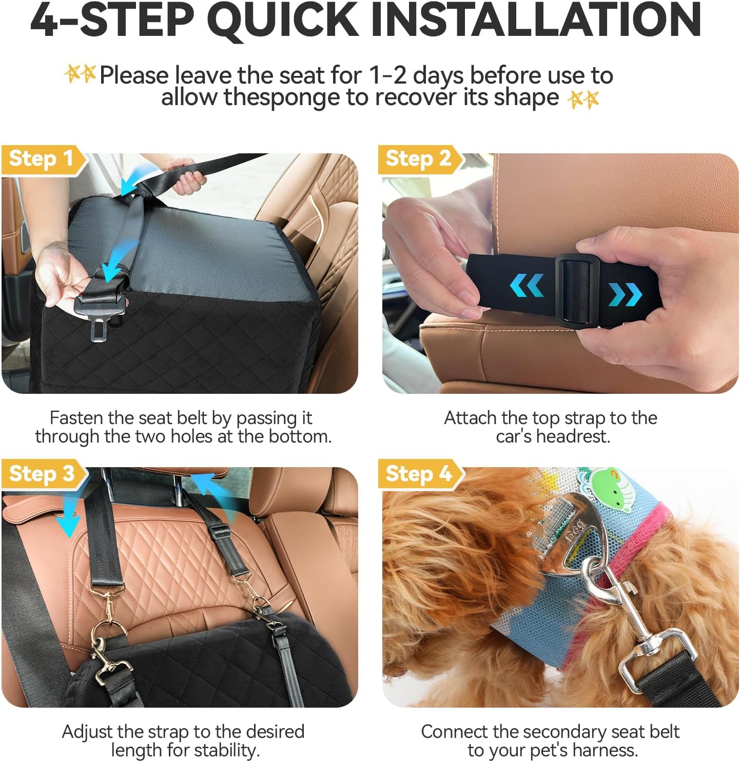 【Safe and Secure】This pet car seat features a built-in adjustable safety belts to secure your dog’s harness, preventing them from jumping out the window.The non-slip bottom and headrest strap keep the seat stable and secure, ensuring your pet stays safe and comfortable throughout the journey.
