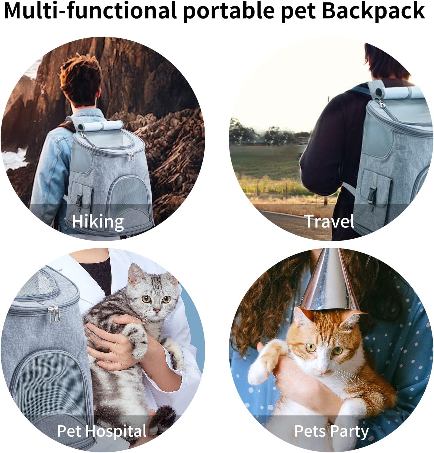 【Multifunctional for traveling】: When you open the top mesh to let your pet stick out its head, the safety rope inside can prevent your pet from escaping. The hand strap design of this cat backpack is very convenient when you are hiking, traveling, taking your pet to the vet or walking in the park.Our pet backpacks provide maximum ventilation so your pet can enjoy the outdoors with you.