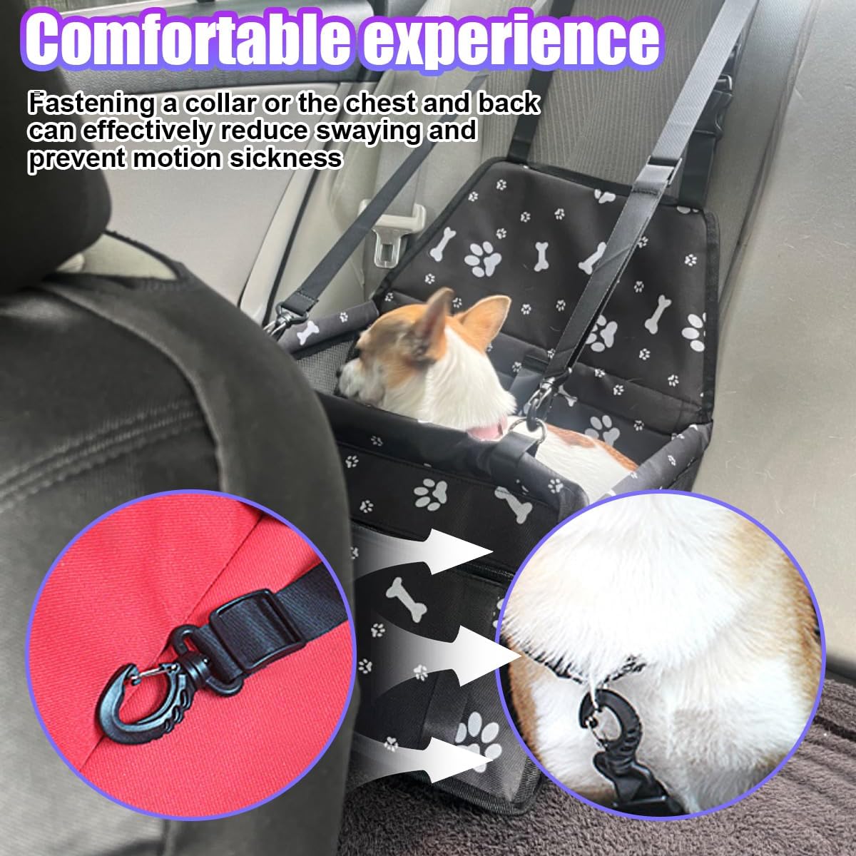 【Quality Material】: The dog car seat is meticulously crafted from 600D Oxford fabric, which is waterproof, anti-slip, breathable, soft to the touch, odorless, and rugged. It is not prone to deformation even after long-term use and can provide a comfortable riding experience for pets.
