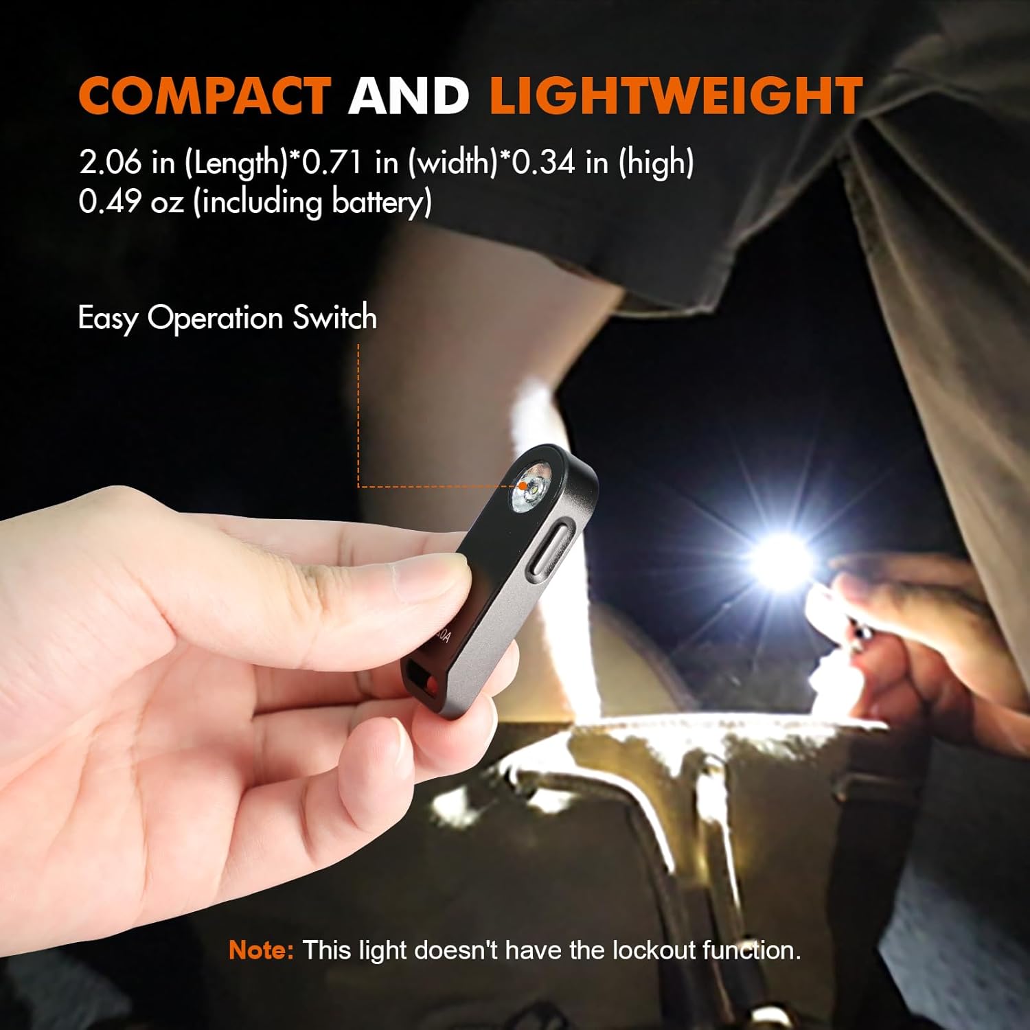 Mini and Compact: This Tiny keychain flashlight is almost unnoticeable on your keychain with the 2.06 in length and the weight of 0.49 oz