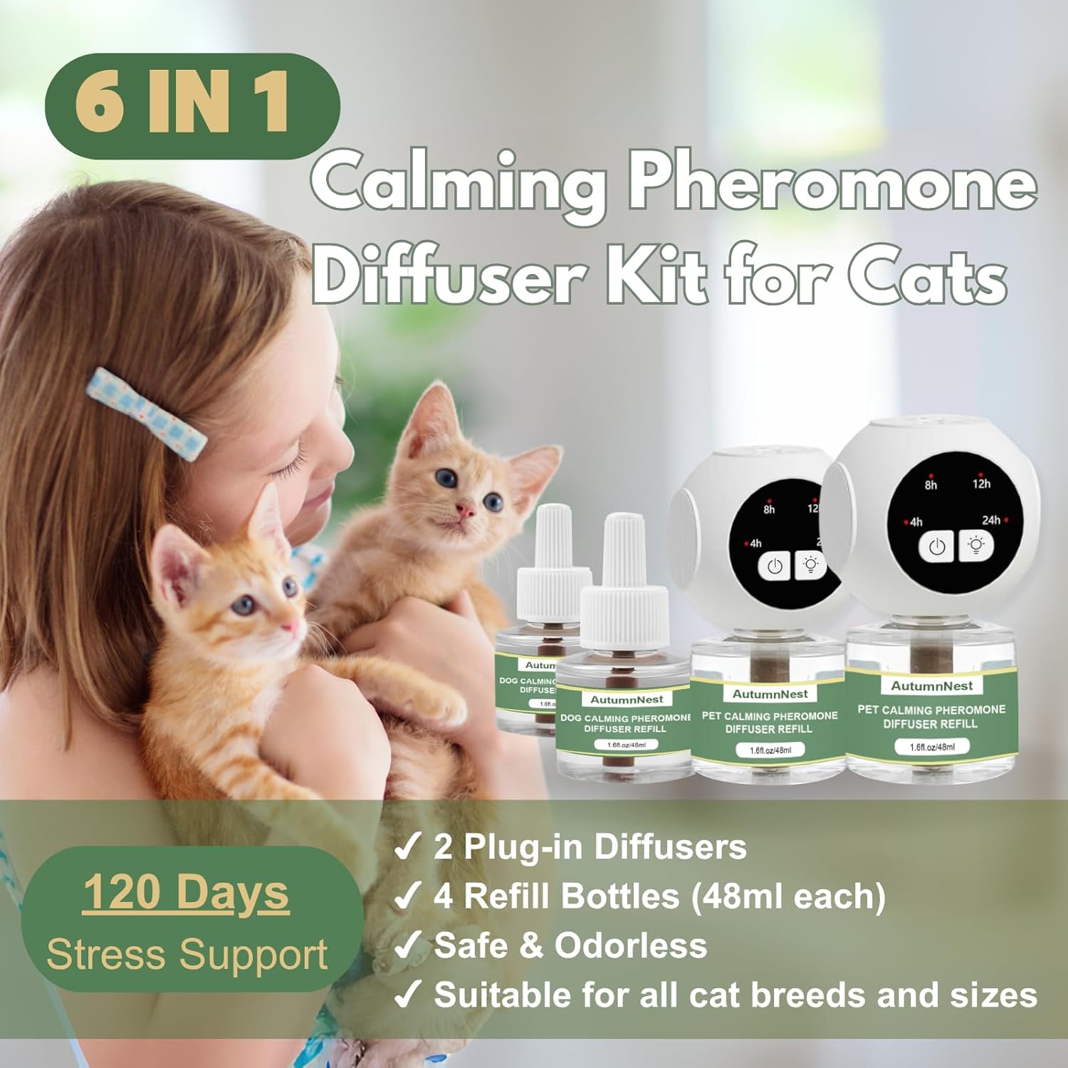 【Natural Pheromone Formula – Noticeable Calm in 14 Days】 This diffuser mimics mother cat pheromones to provide a safe, familiar environment. Supports stress reduction for urine marking, scratching, hiding, and over-grooming. Gentle, non-irritating formula helps cats adapt more peacefully.