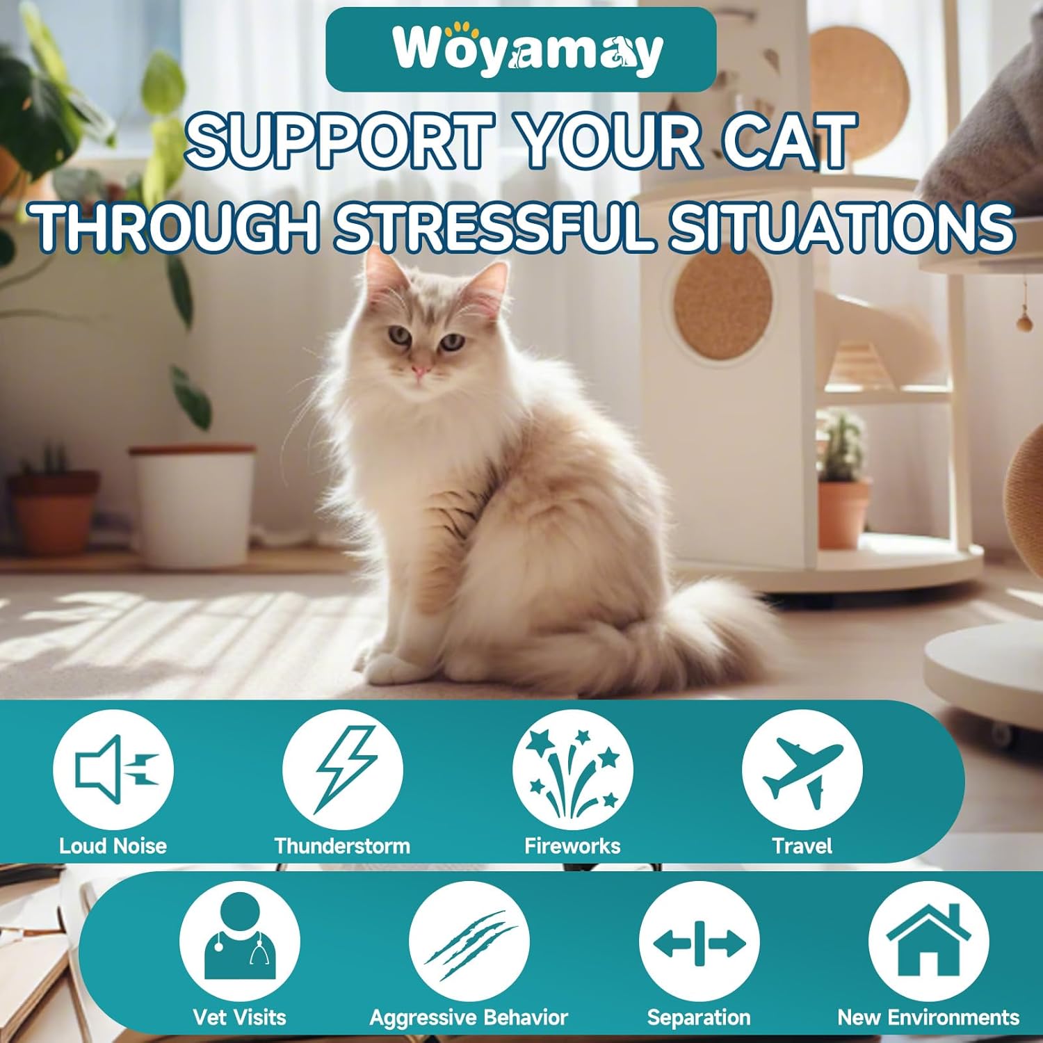 CAT CALMING TREATS FOR STRESS RELIEF: Woyamay 200-treat calming chews for cats help effectively and quickly reduce anxiety, soothing cats during separation, travel, new environments, storms, or grooming. These calming cat treats support relaxation and maintain normal stress levels, helping your cat feel calm, happy, and comfortable while improving sleep quality.