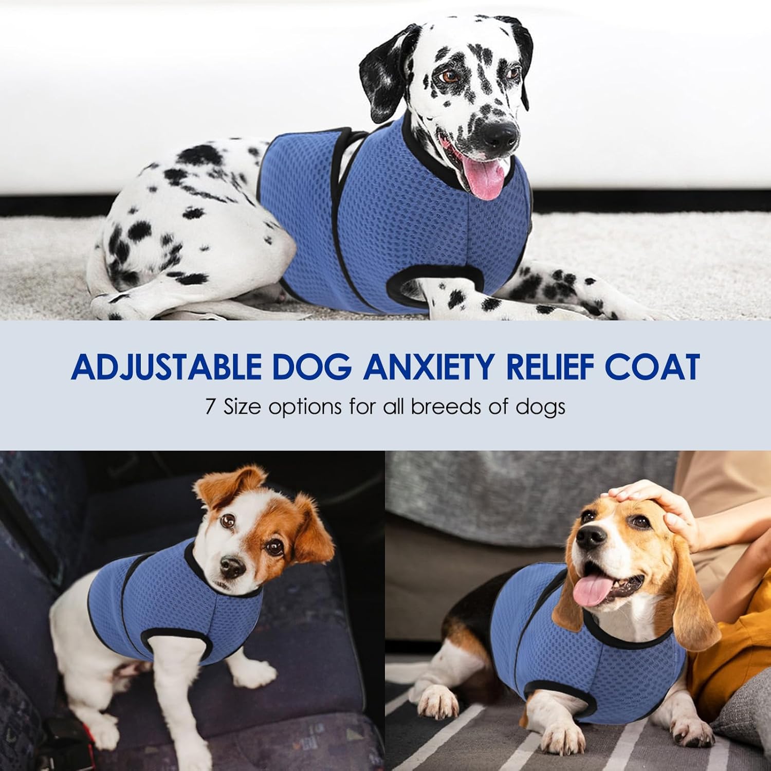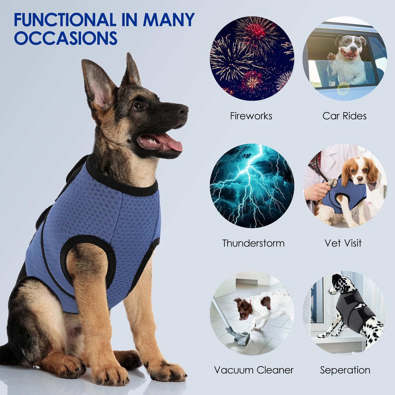 Perfect Fit for All Breeds: Designed as a vest for dogs anxiety, this dog calming shirt comes in 7 sizes (XS-3XL) with adjustable hook and loop design to fit small to large dog storm anxiety jacket needs. The strechy mesh fabric ensures comfort for extended wear