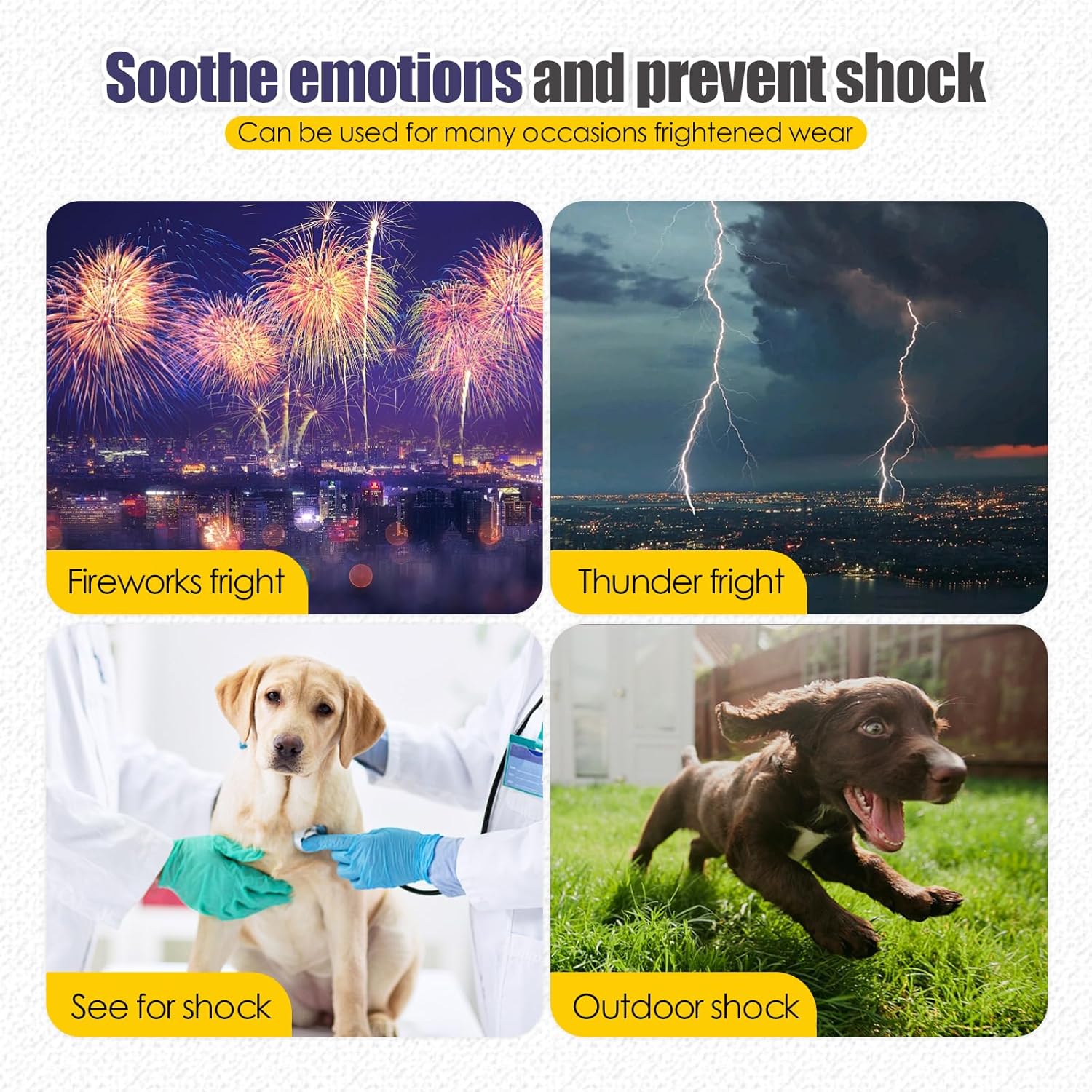 This dog anxiety relief vest will be effectively helpful to reduce your dog’s anxiety during thunder, thunderstorm, loud noises, travel, fireworks, flames, strangers, separation, vet visits and many other anxieties situations.Dog anxiety vest has already recommended by thousands of veterinarians and dog trainers.