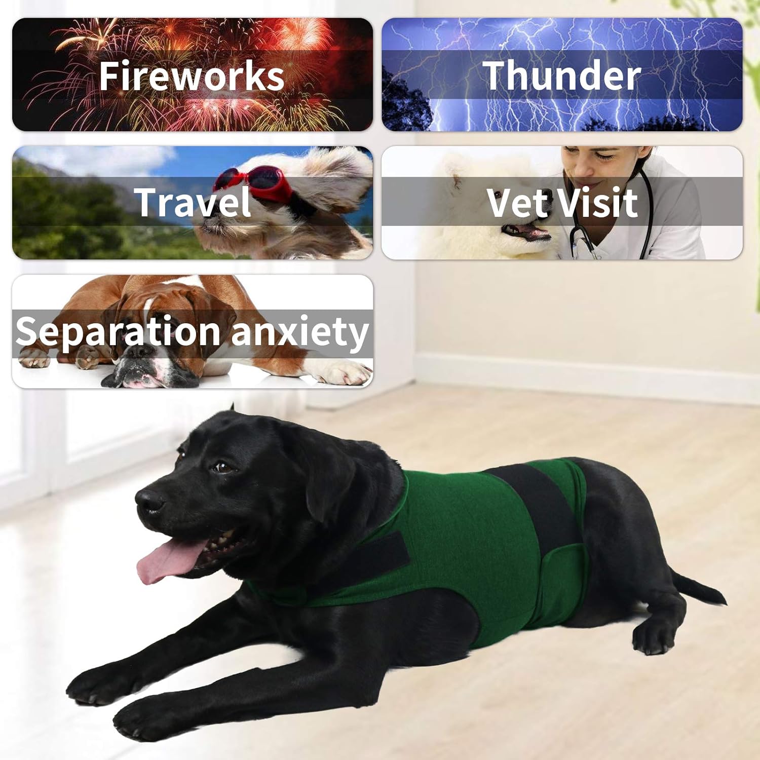 Thunderstorms are terrifying to dogs. They may pant, scratch, hide and other anxiety symptoms.Calm shirt gentle pressure to let it release anxiety .