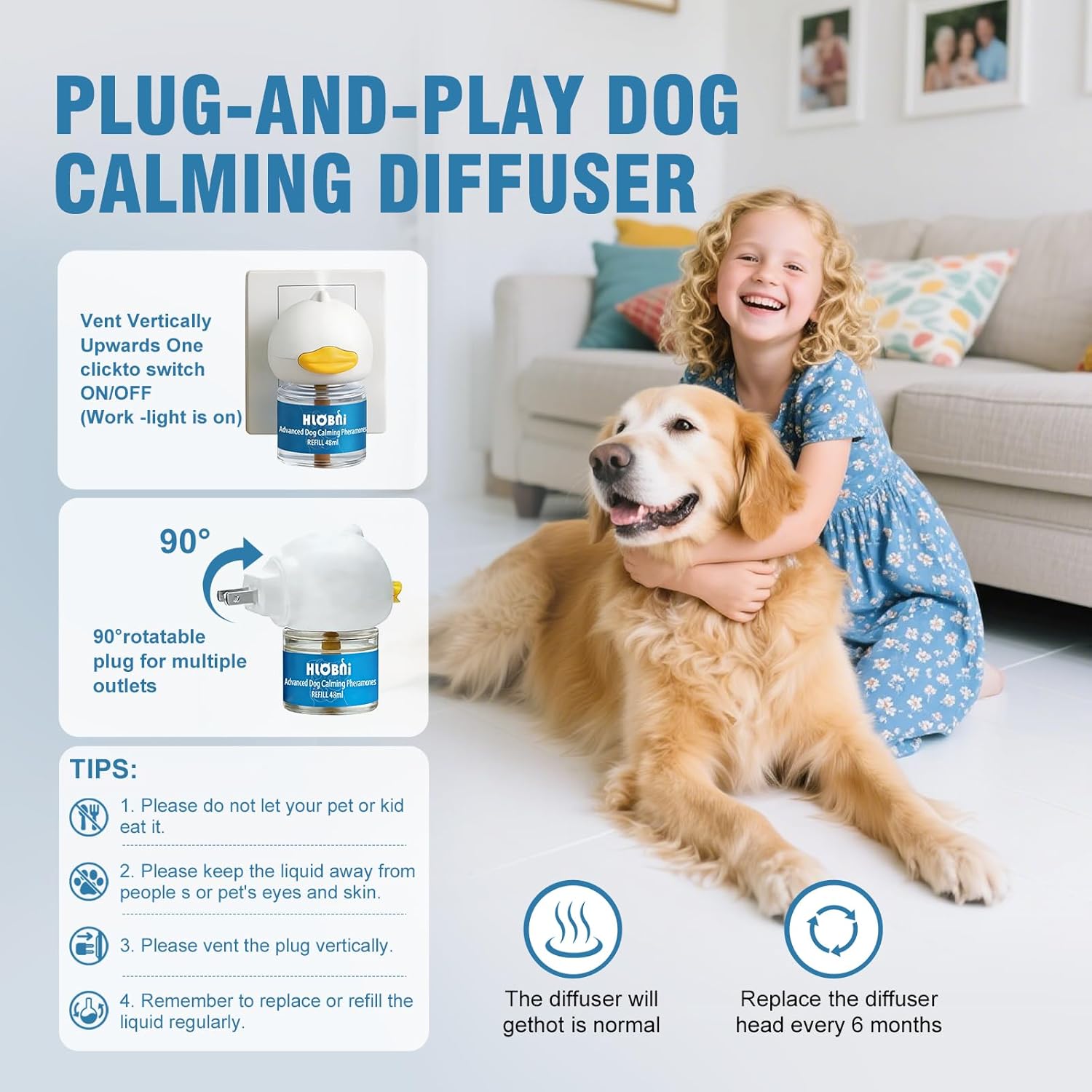 EFFECTIVE RELIEF FOR ANXIETY-DRIVEN BEHAVIORS – HLOBNI Dog Calming Diffuser has been proven to reduce destructive behaviors such as indoor accidents, chewing furniture, and excessive barking. Help your dog feel secure and relaxed in various stressful situations, including fireworks, thunderstorms, separation anxiety, and vet visits.