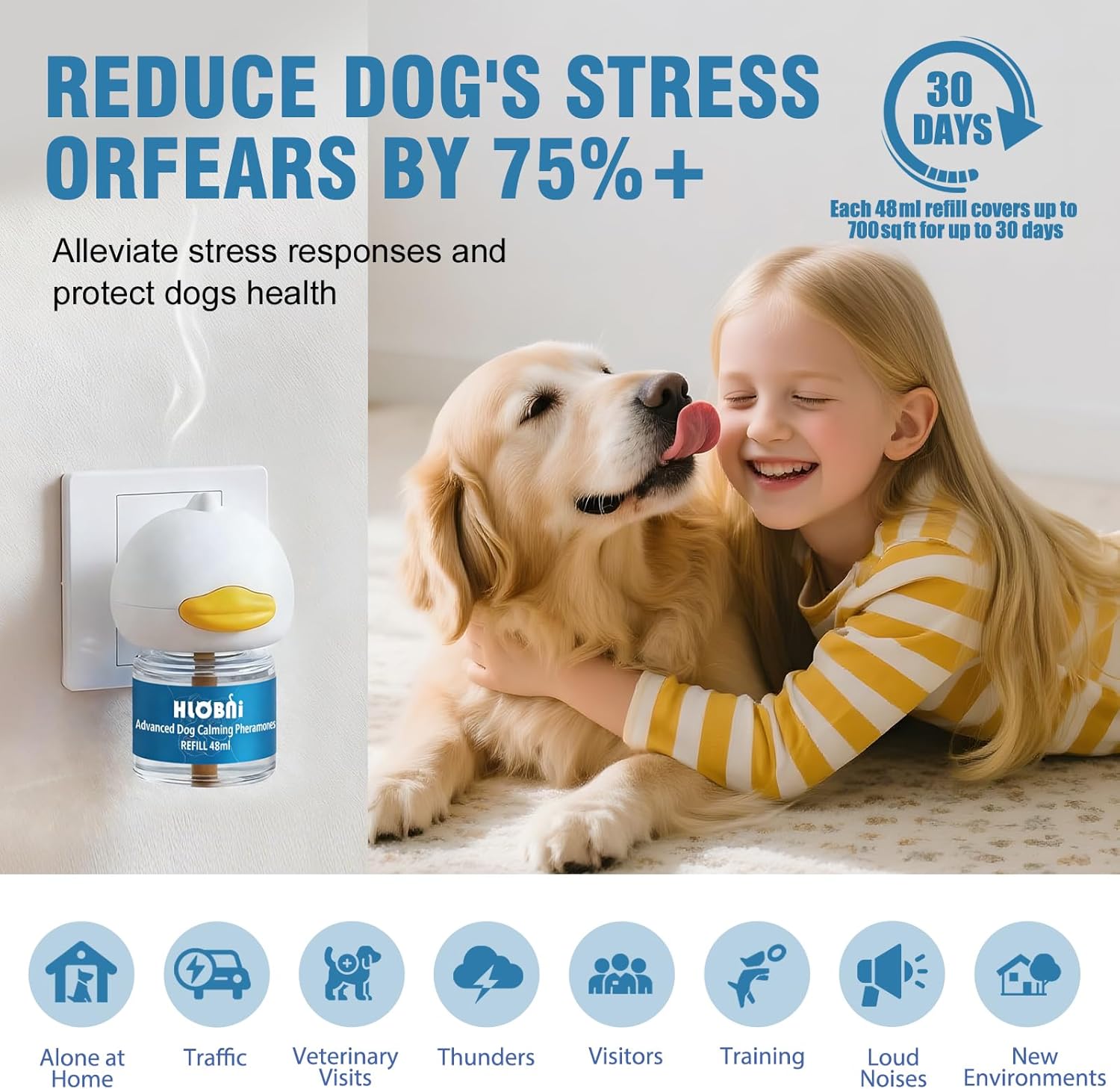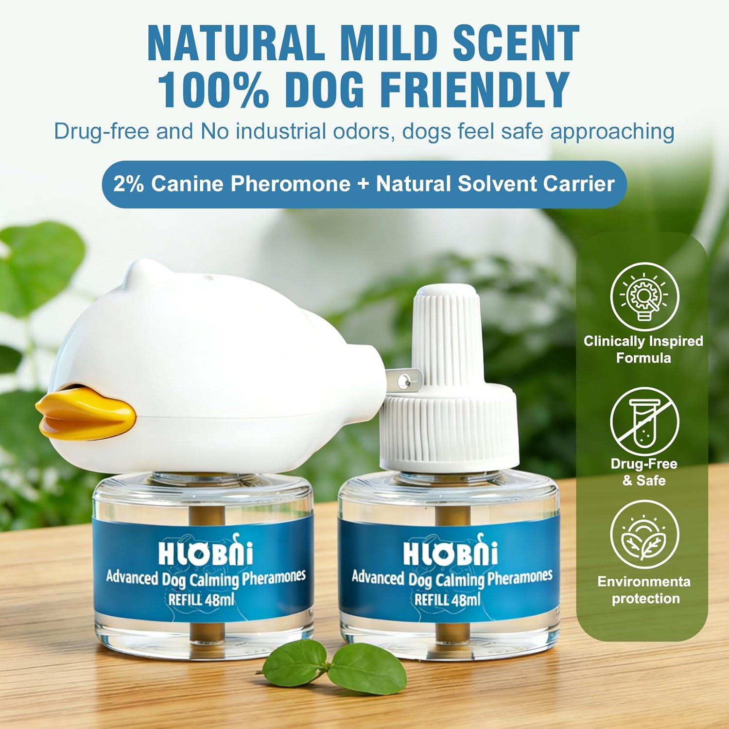 REVOLUTIONARY DUAL-PHEROMONE TECHNOLOGY – HLOBNI Dog Calming Diffuser combines mother-comfort and territorial-peace pheromones in a professional-grade formula to tackle anxiety behaviors like barking, peeing, and destructive chewing. This powerful pheromone blend provides effective stress relief for your dog, ensuring maximum comfort and peace in your home.