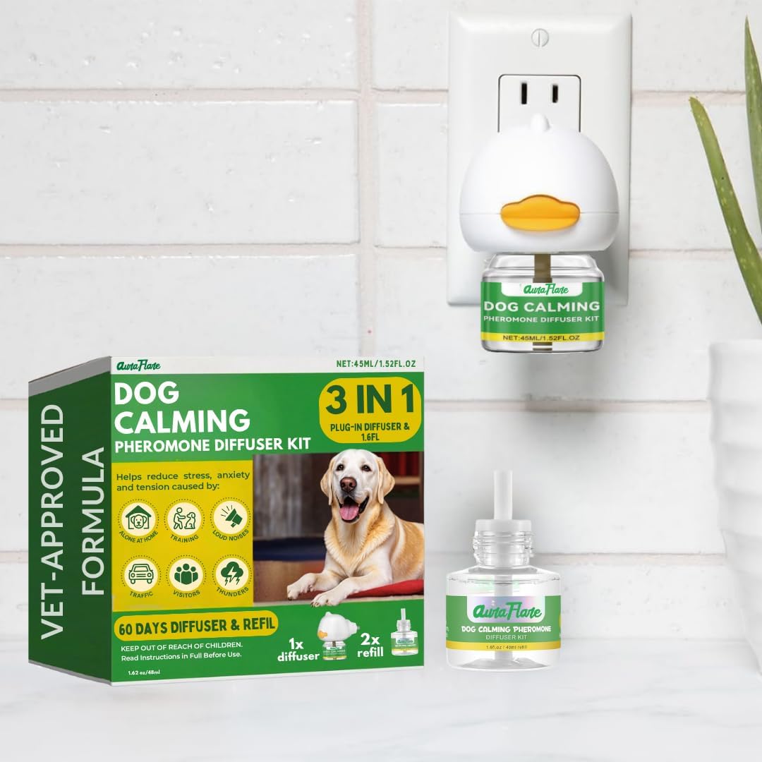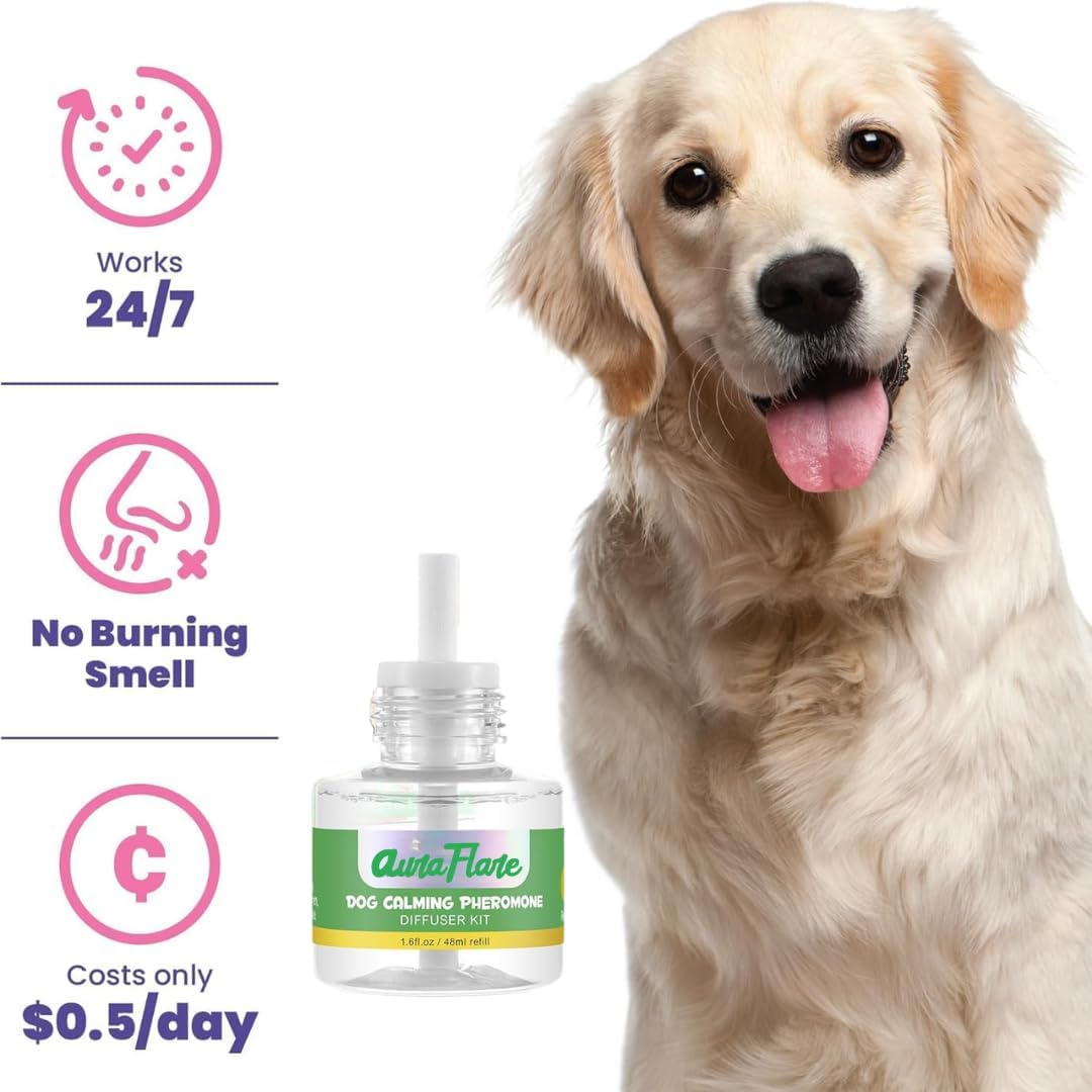 NATURAL CALMING FOR DOGS – This dog calming pheromone diffuser helps ease anxiety and stress. Works as a pet calming diffuser and dog diffuser calming aid for indoor comfort.