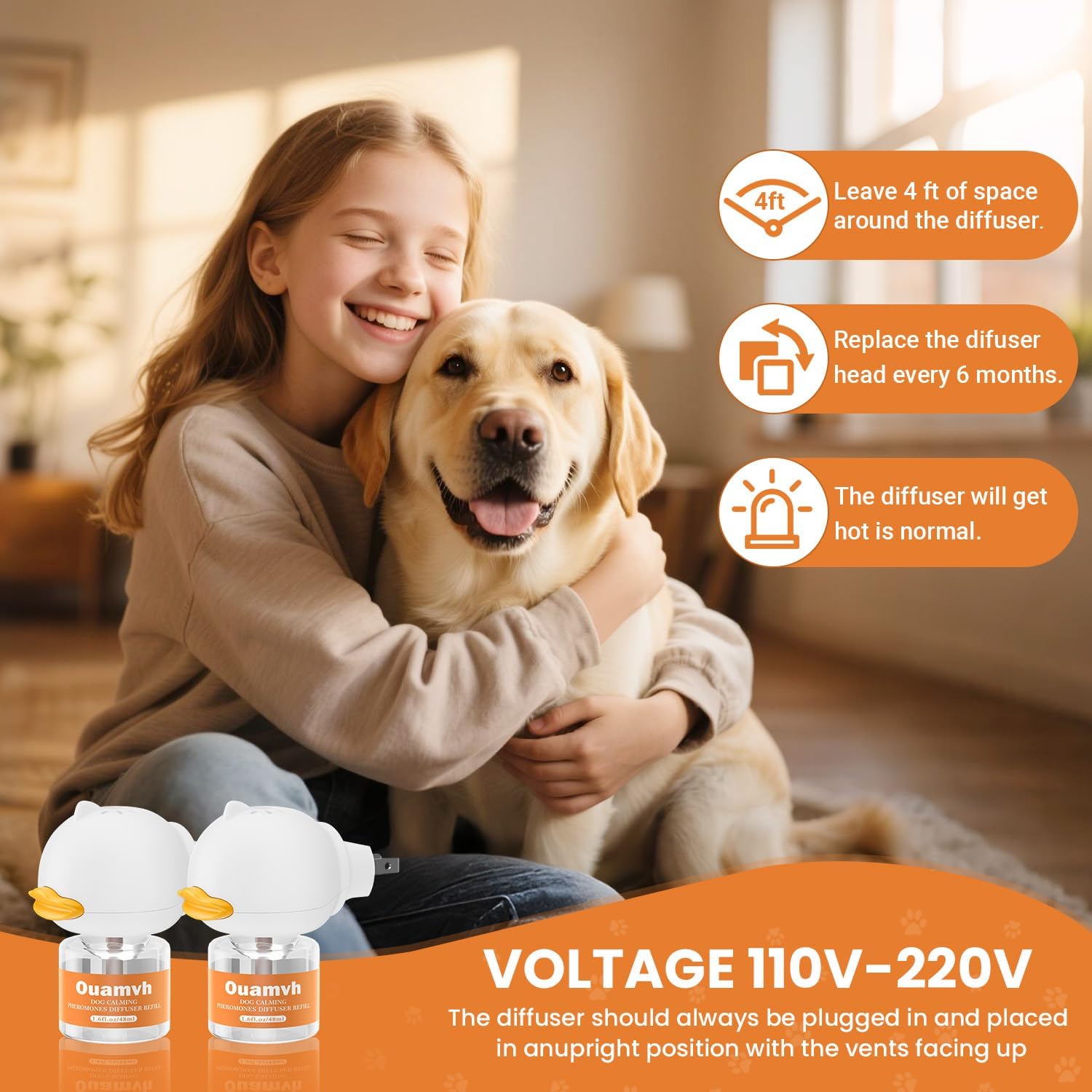 Ouamvh Dog Calming Diffuser originated from a profound comprehension of dogs’ distinctive communication patterns and behaviors. Our team, consisting of top veterinarians, animal behaviorists, and dog owners, has dedicated years to studying canine pheromones and their influence on stress and anxiety in dogs.